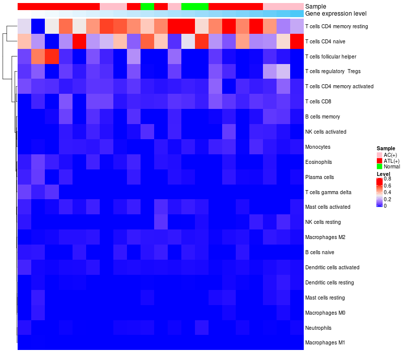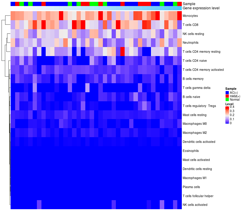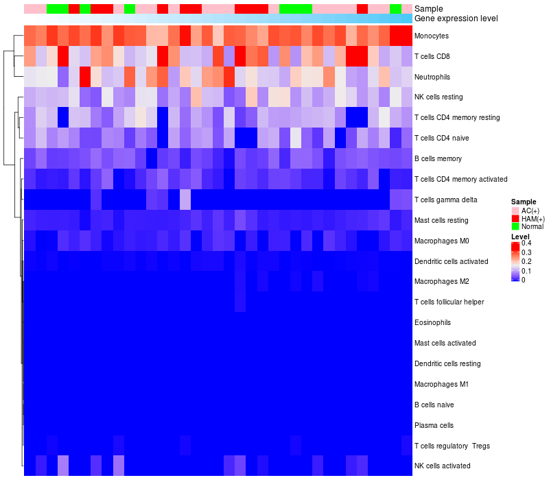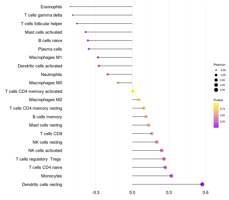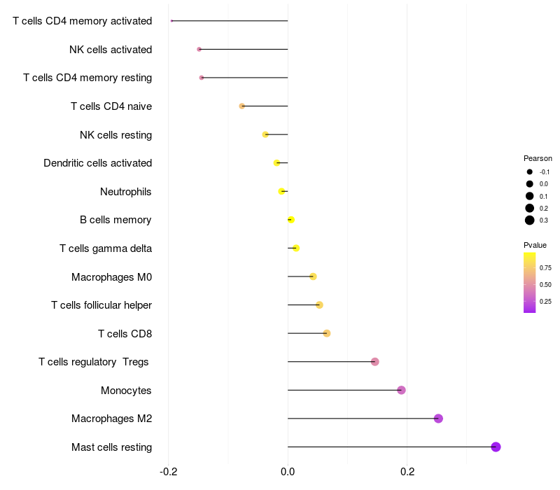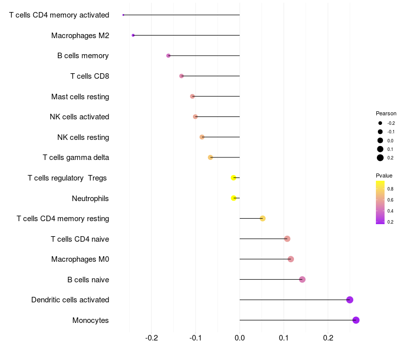 Relationship between gene expression and immune infiltrating cell level