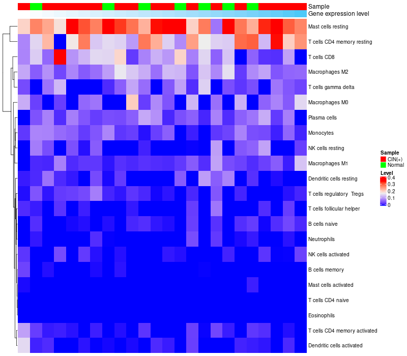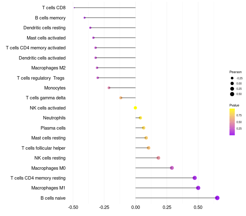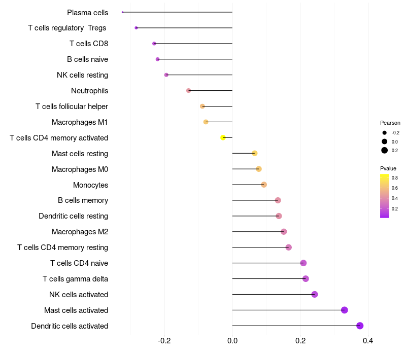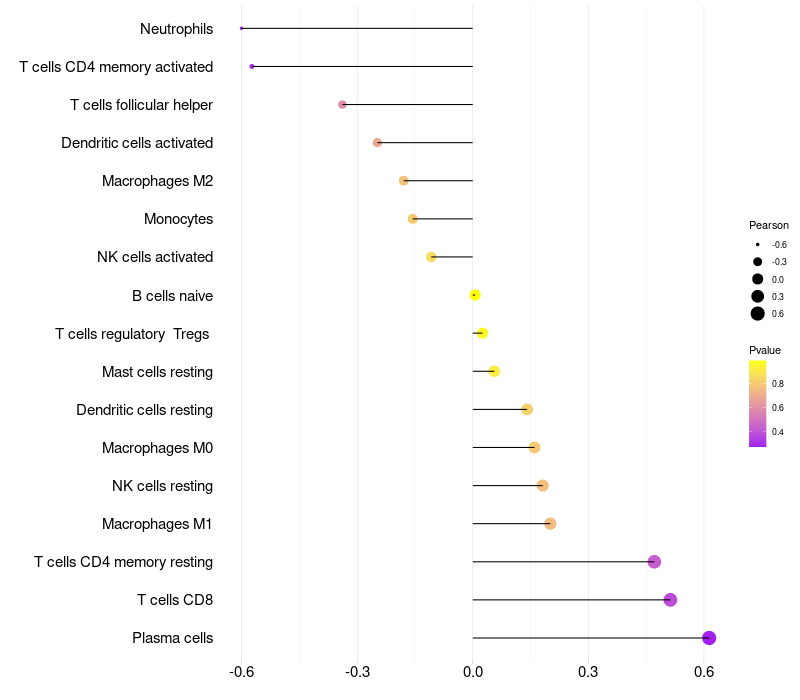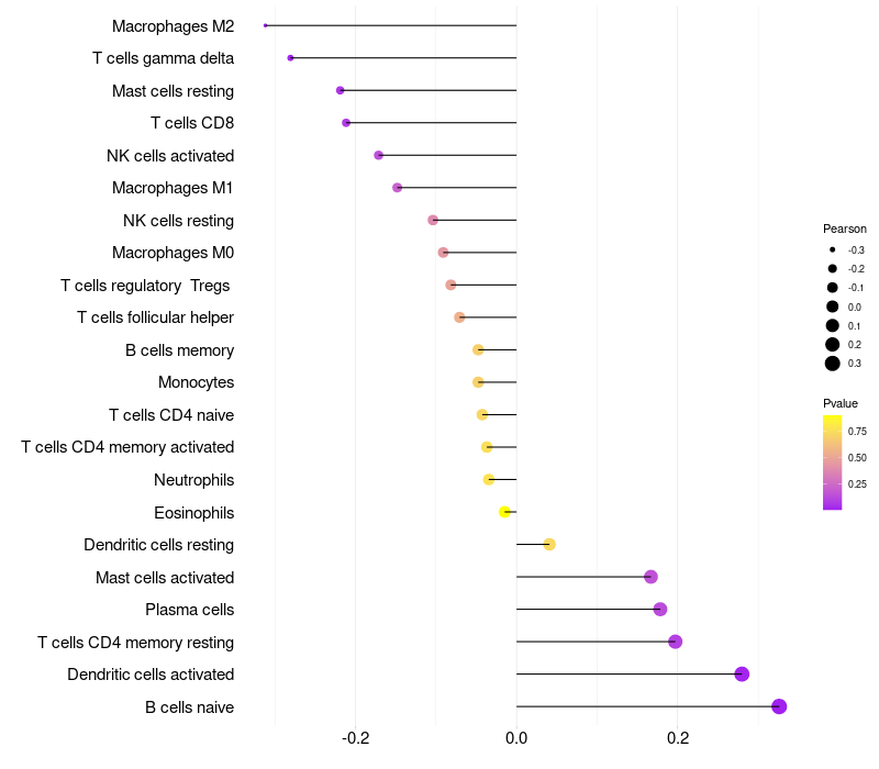 Lollipop of GPR89A expression and immune infiltrating cell level correlation result in HPV+ samples