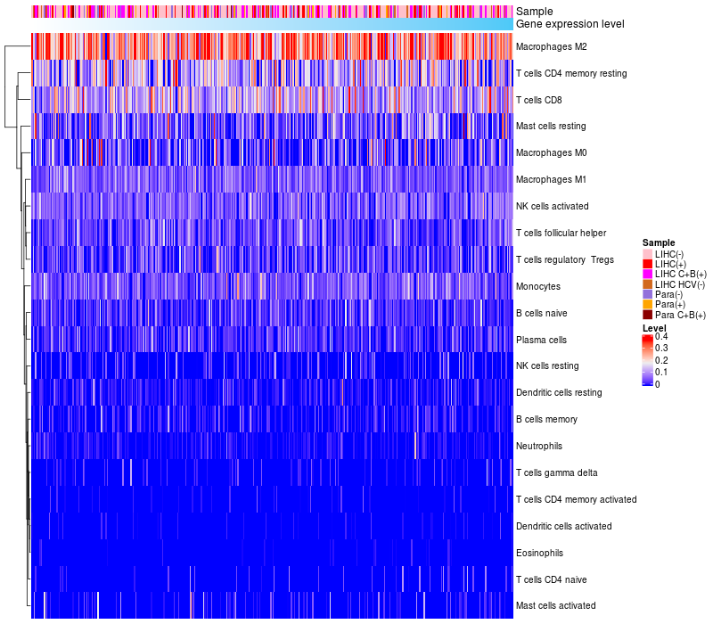 Relationship between gene expression and immune infiltrating cell level