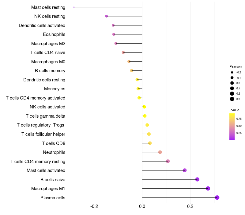 Relationship between gene expression and immune infiltrating cell level