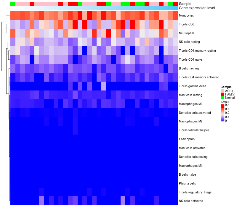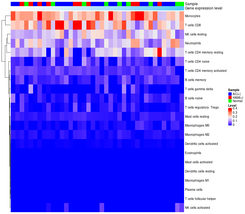 Relationship between gene expression and immune infiltrating cell level