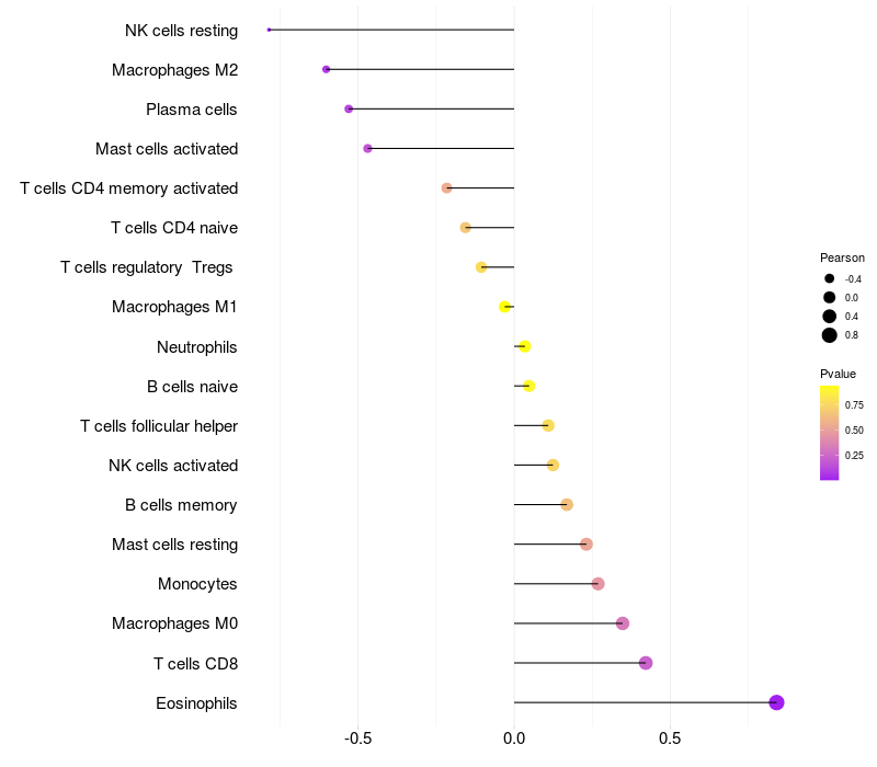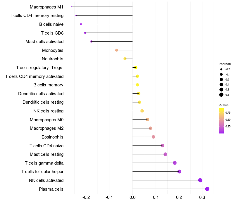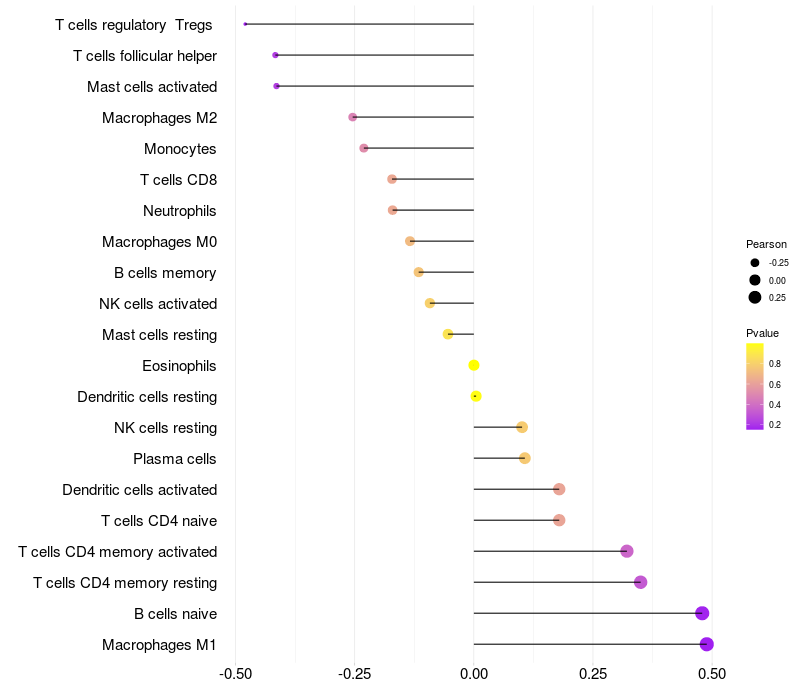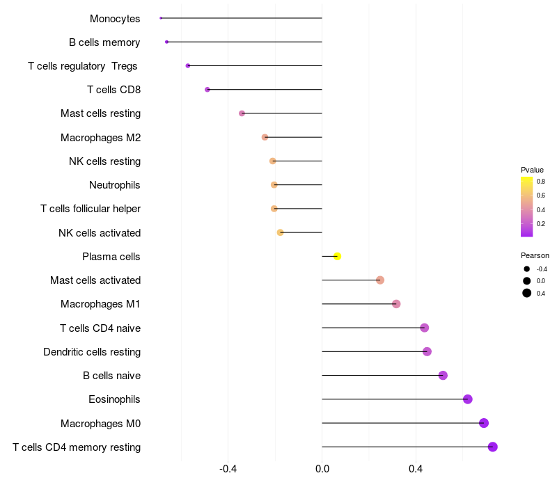 Lollipop of GRK4 expression and immune infiltrating cell level correlation result in HBV+ Liver cirrhosis samples