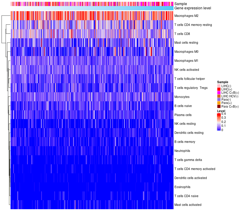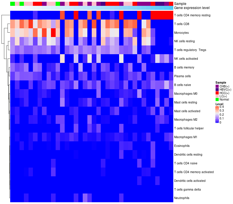 Relationship between gene expression and immune infiltrating cell level