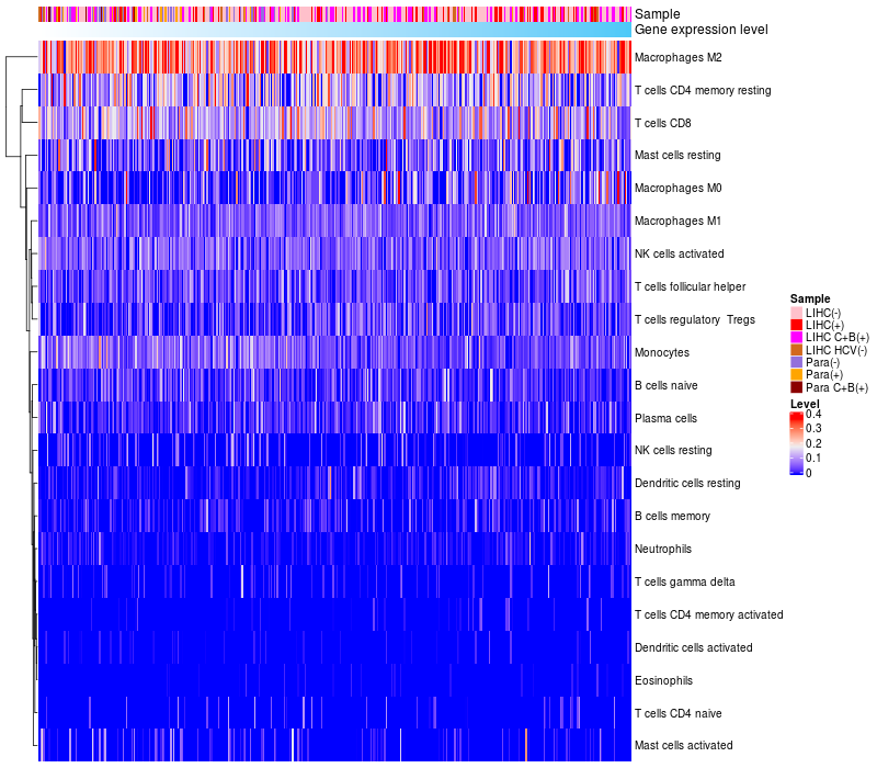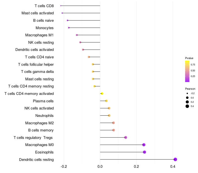 Relationship between gene expression and immune infiltrating cell level