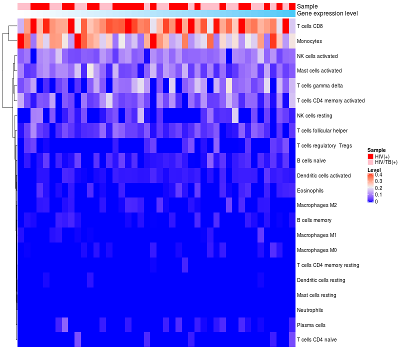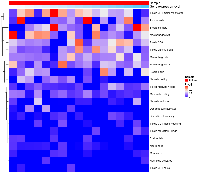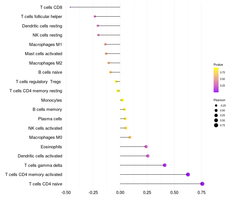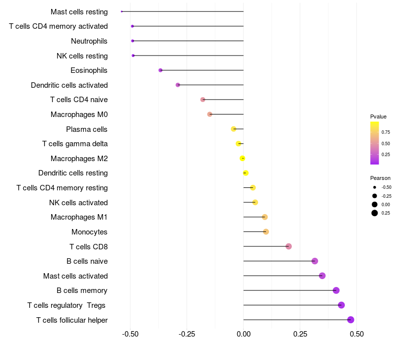 Relationship between gene expression and immune infiltrating cell level