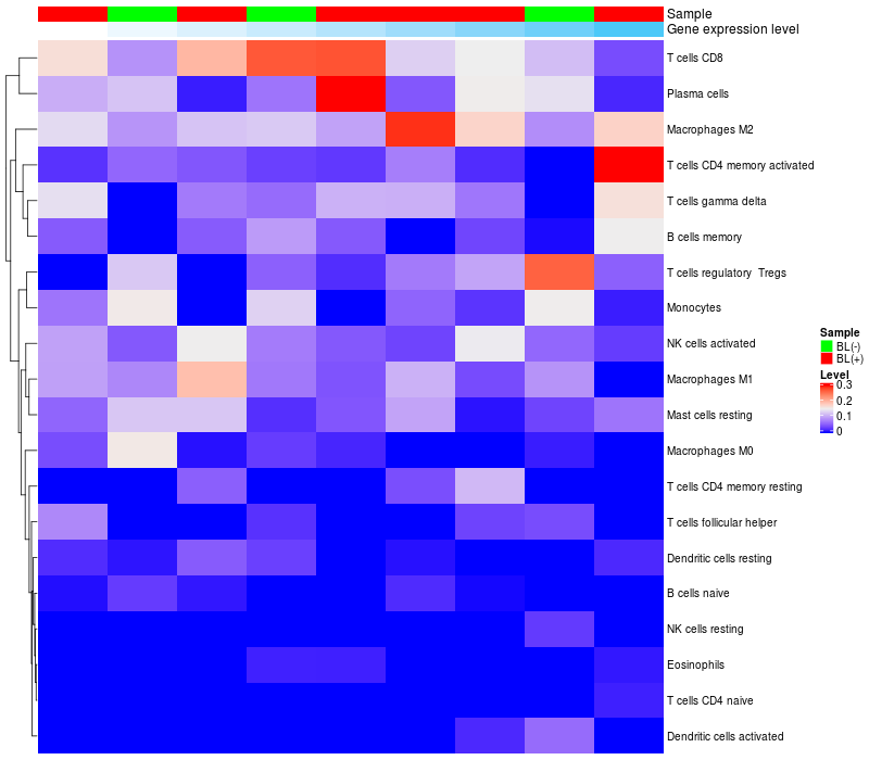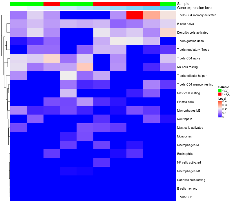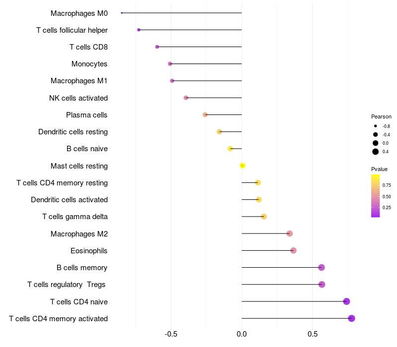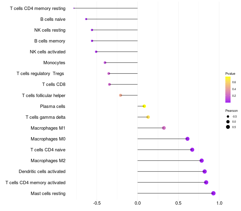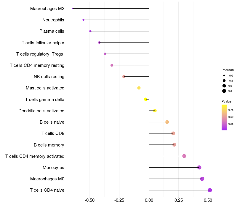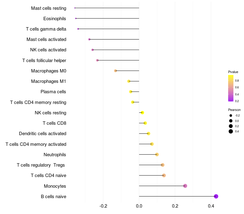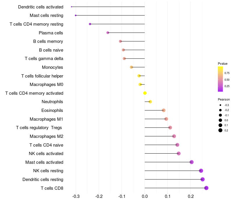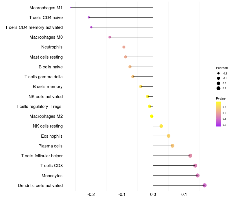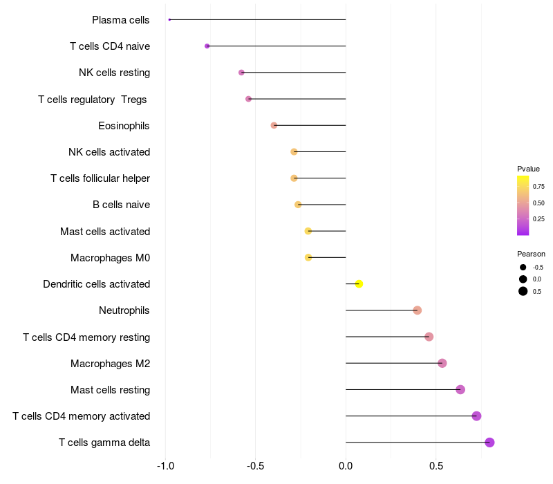 Lollipop of GUCA1C expression and immune infiltrating cell level correlation result in EBV+ samples