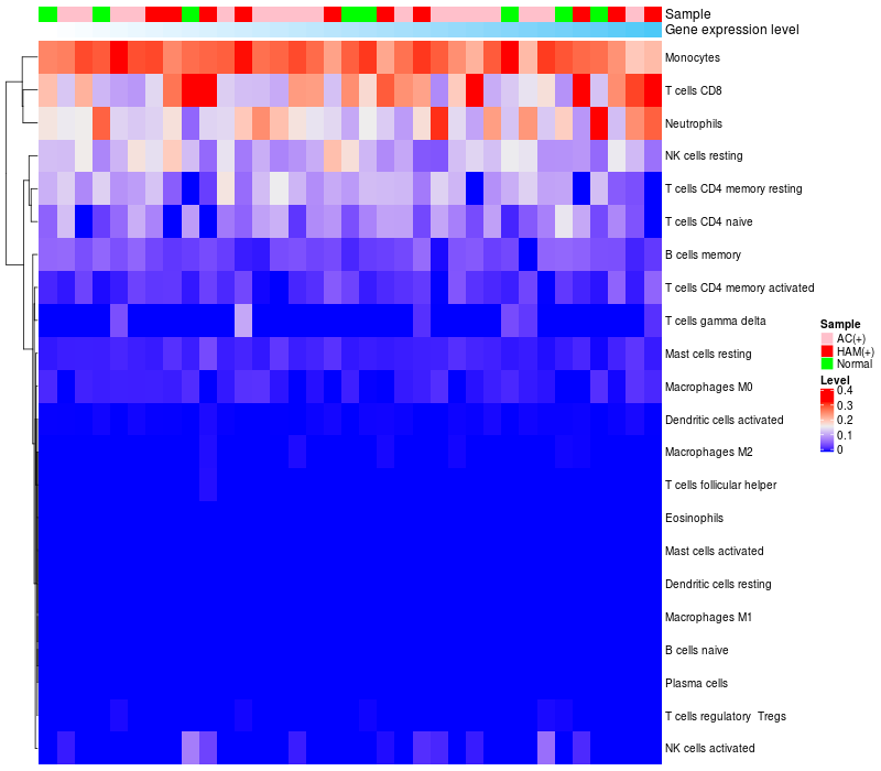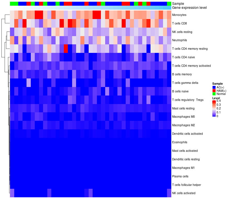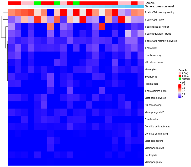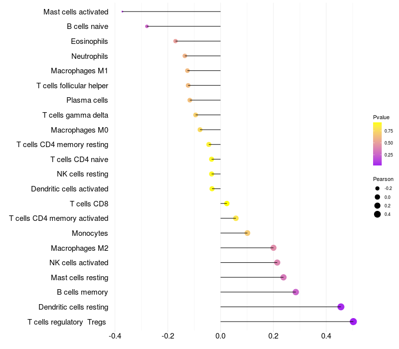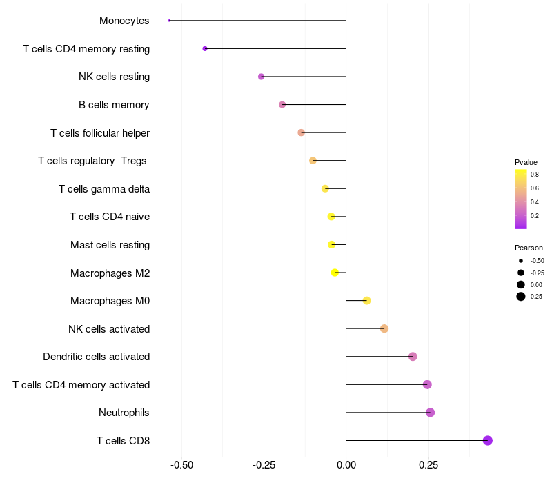 Relationship between gene expression and immune infiltrating cell level