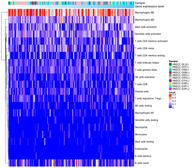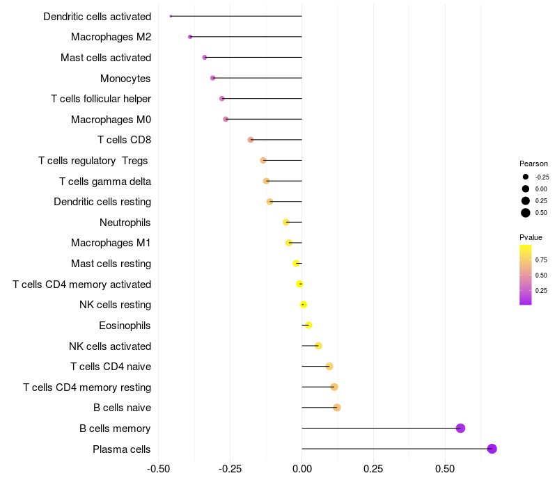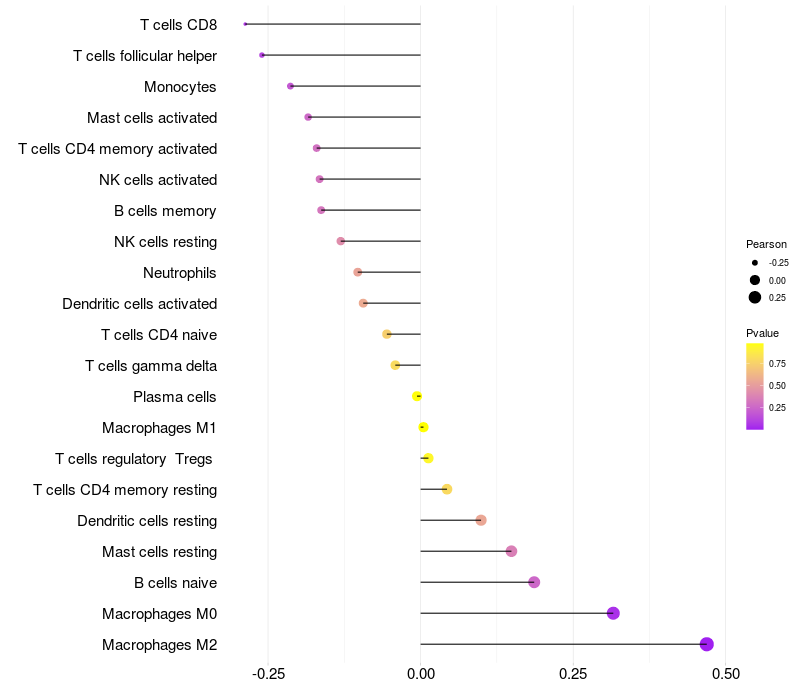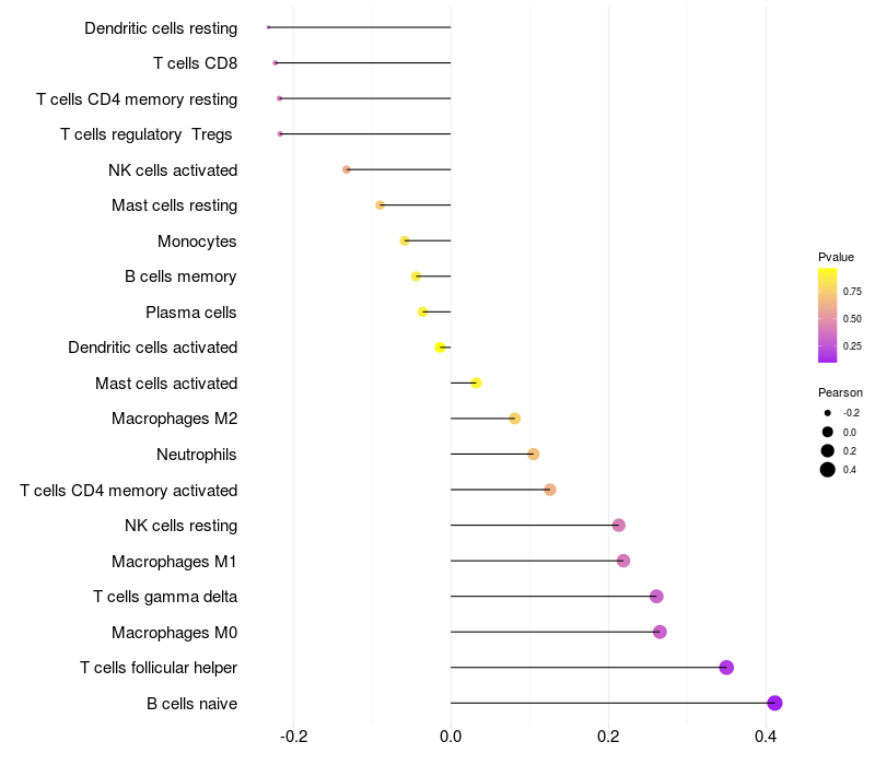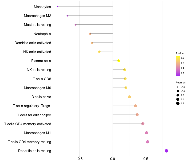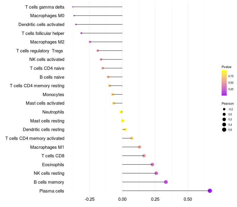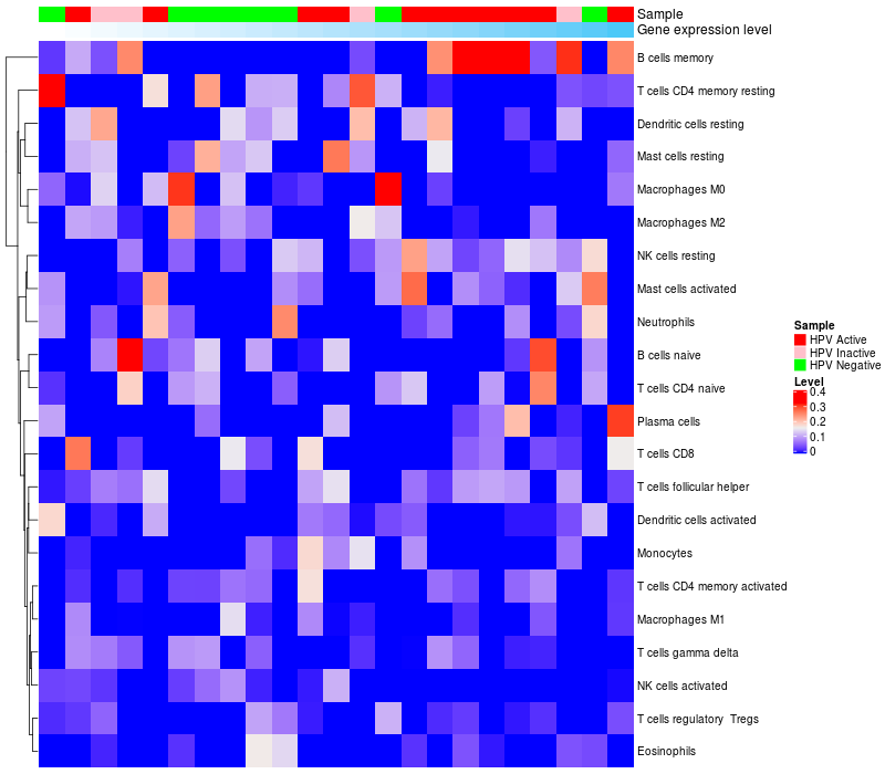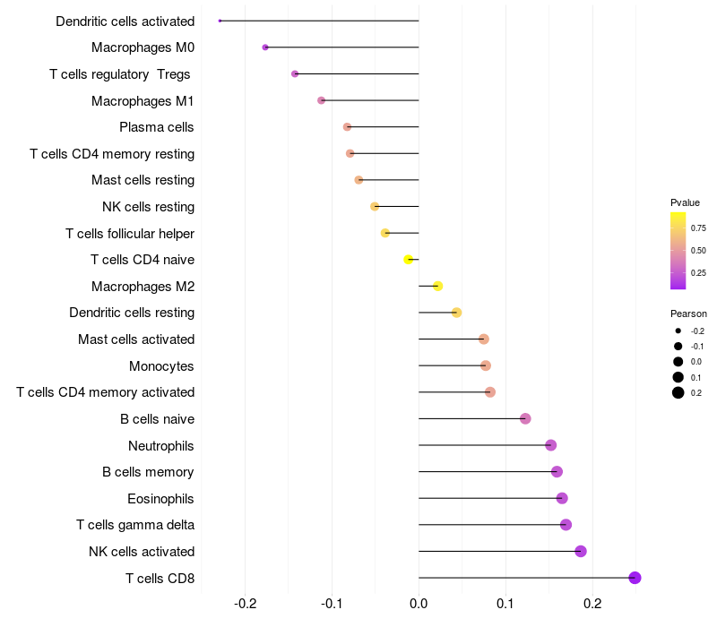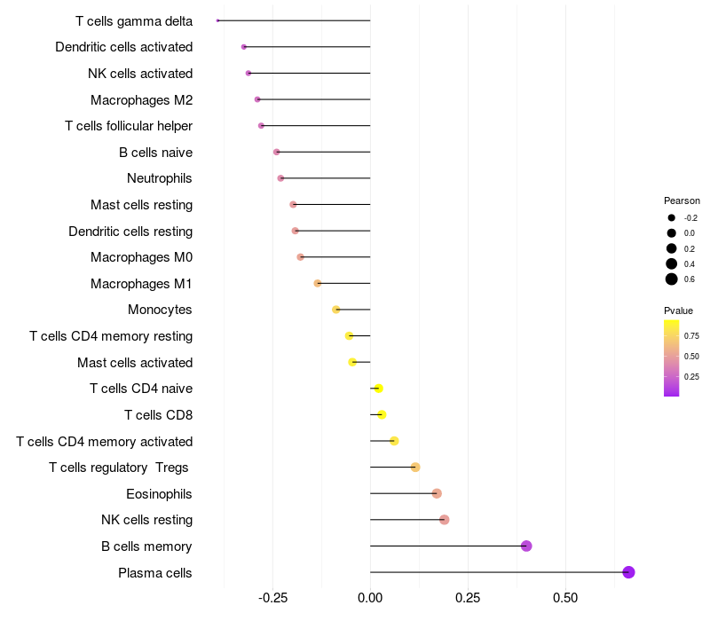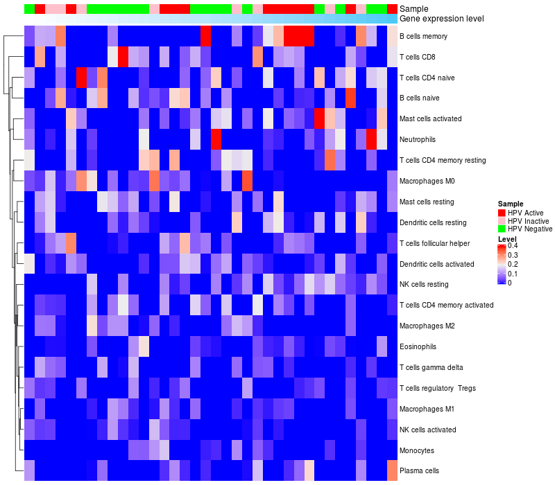 HeatMap of cell type fractions in all samples Lollipop of GYPA expression and immune infiltrating cell level correlation result in HPV+ samples