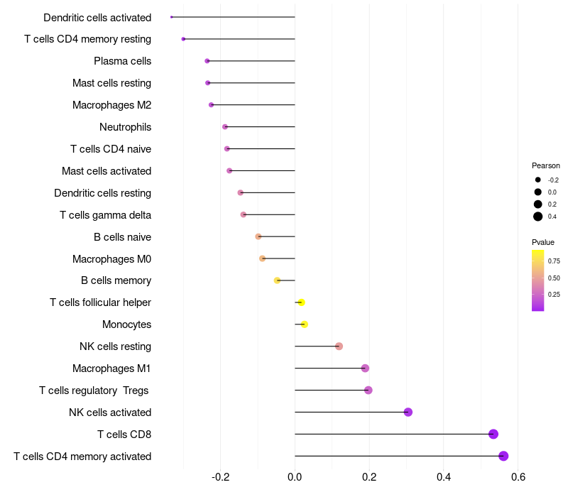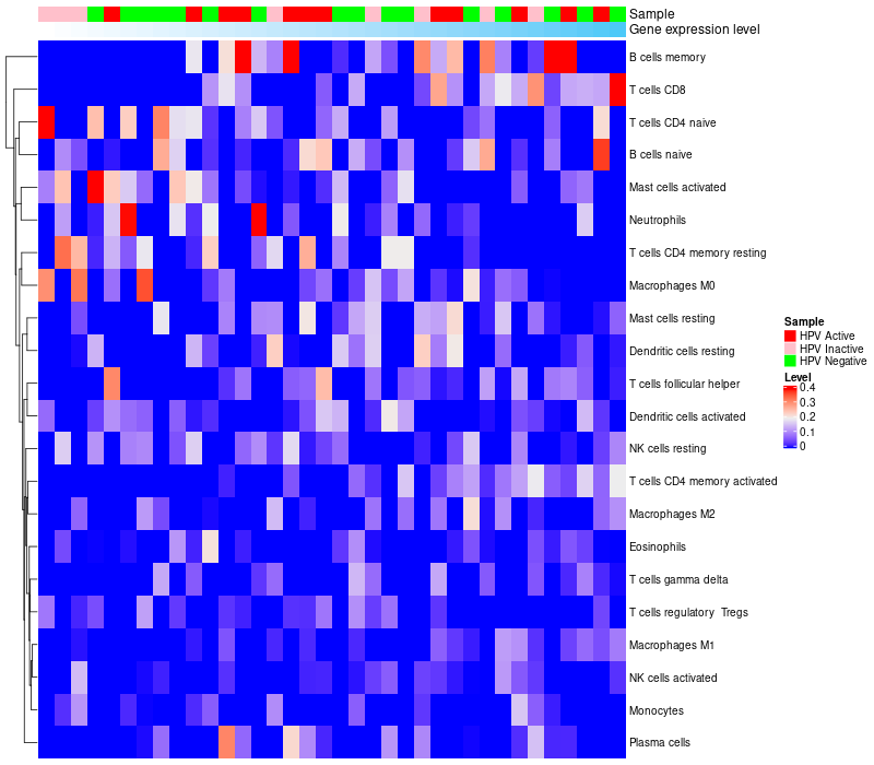 HeatMap of cell type fractions in all samples Lollipop of GZMB expression and immune infiltrating cell level correlation result in HPV+ samples