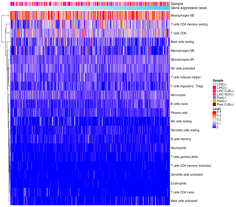 Relationship between gene expression and immune infiltrating cell level