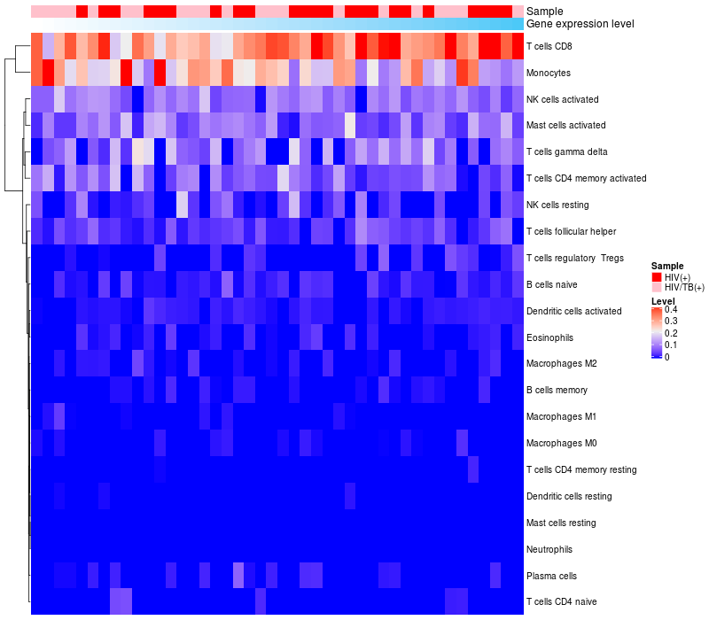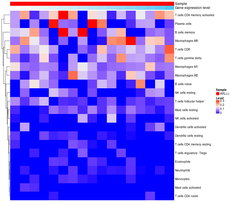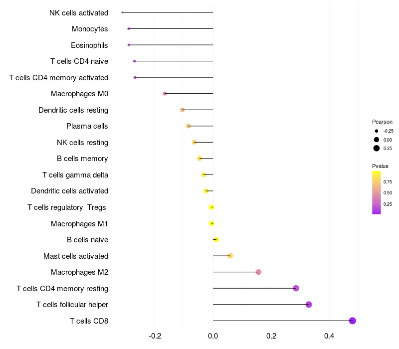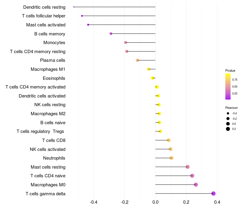 Relationship between gene expression and immune infiltrating cell level