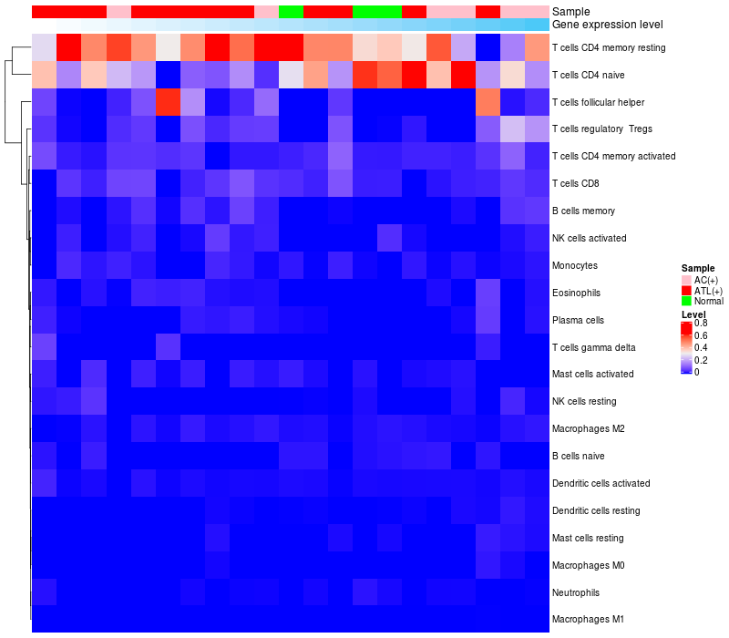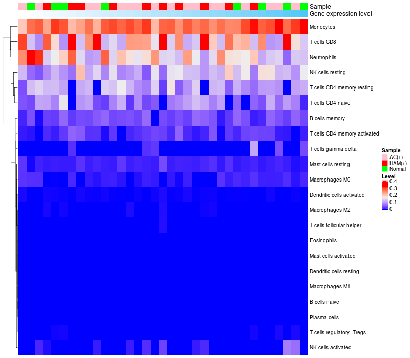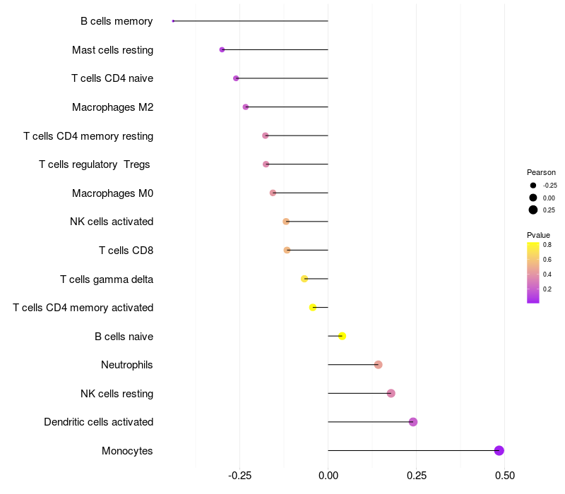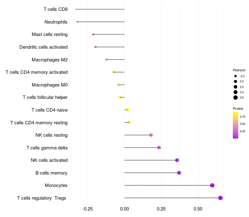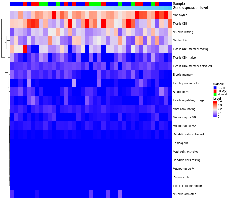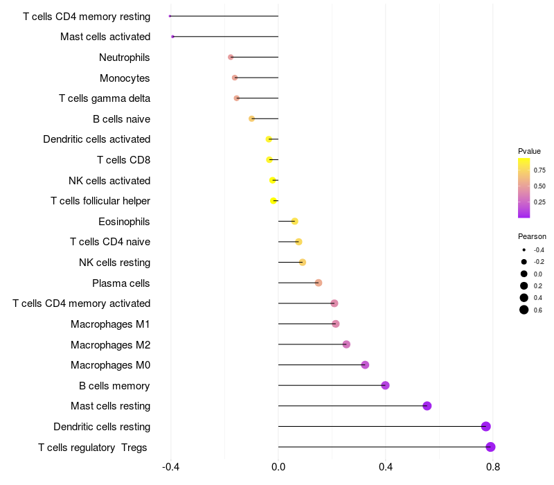 Relationship between gene expression and immune infiltrating cell level
