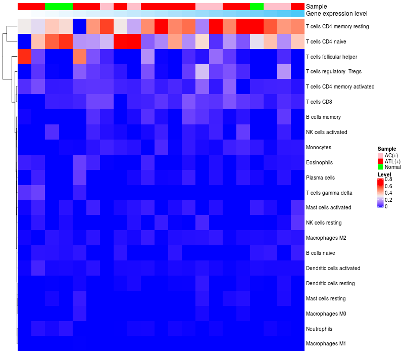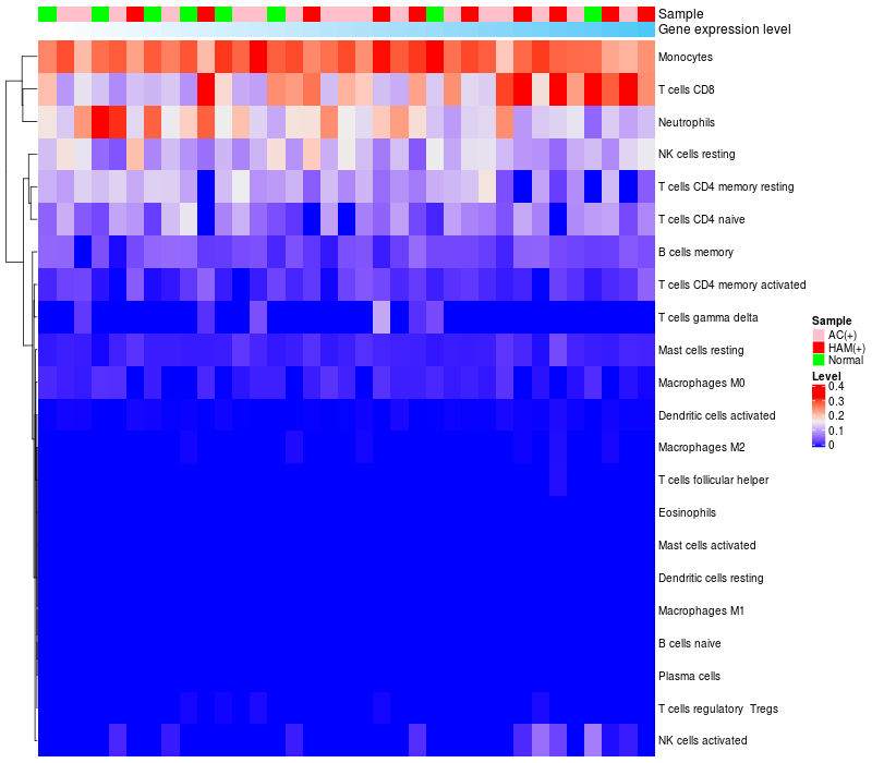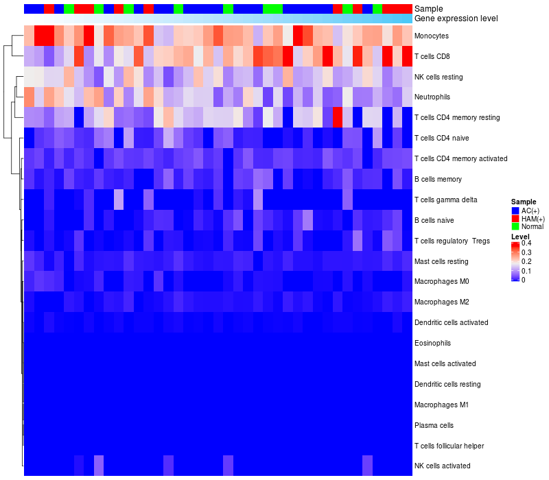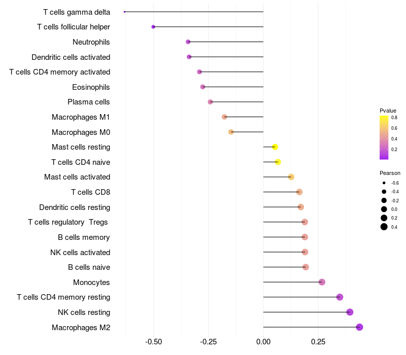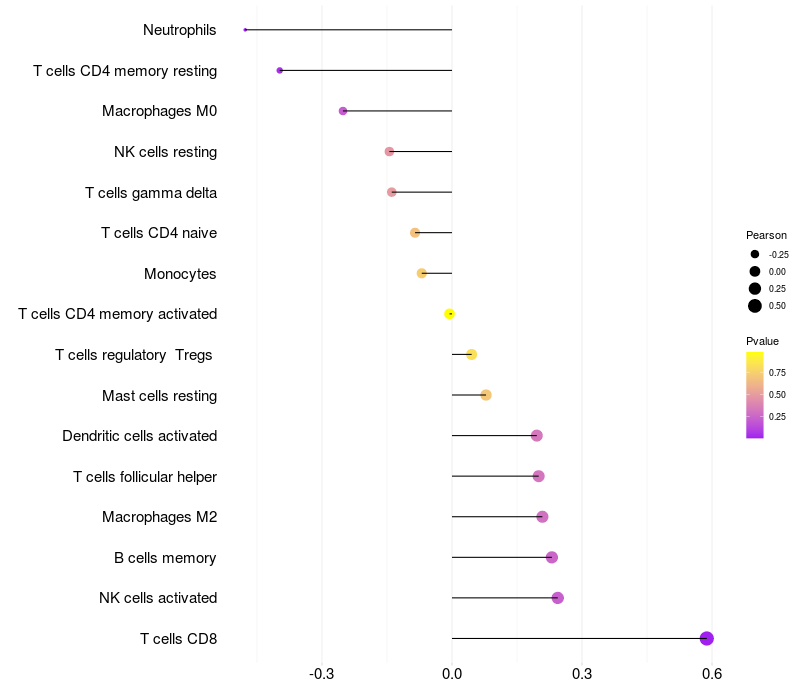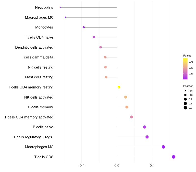 Relationship between gene expression and immune infiltrating cell level