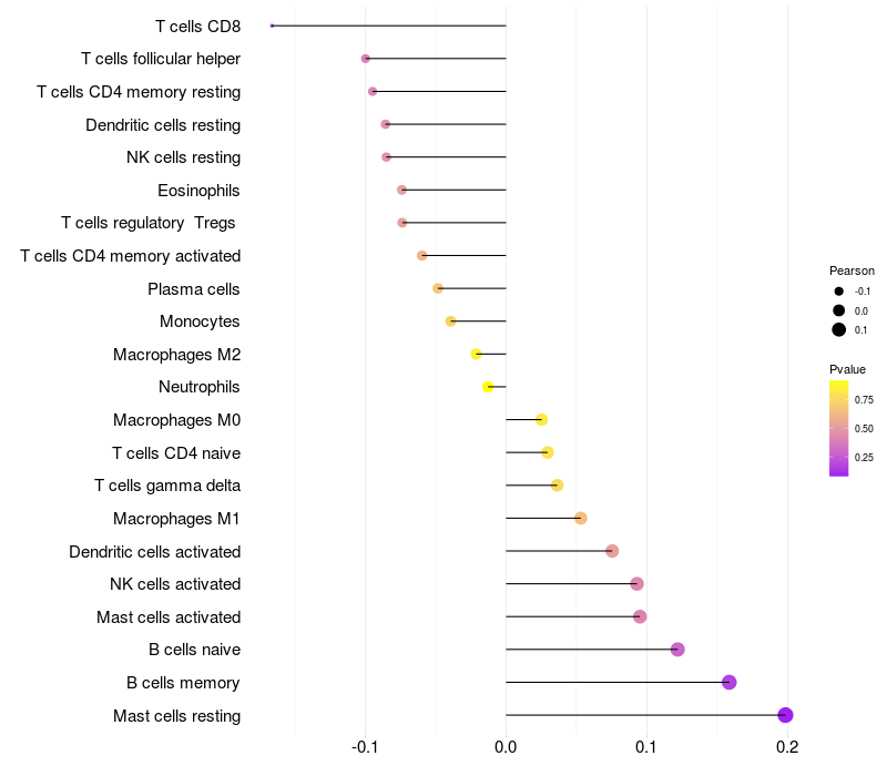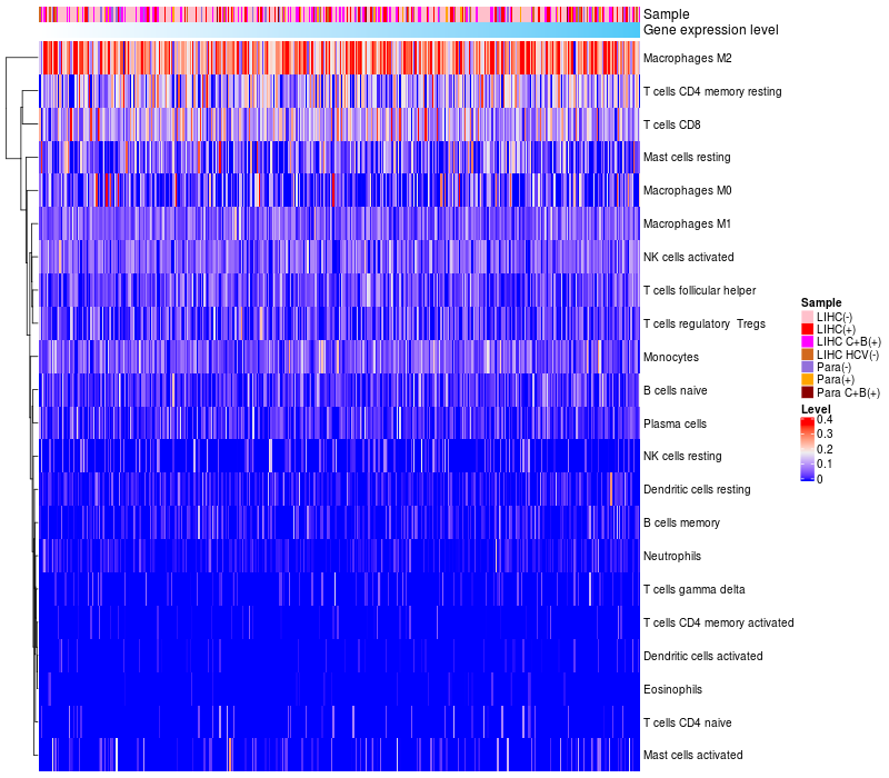 Relationship between gene expression and immune infiltrating cell level