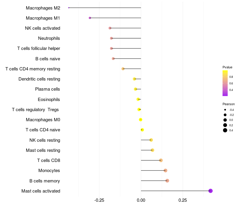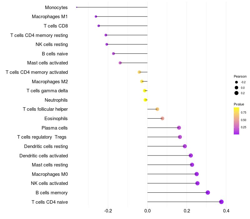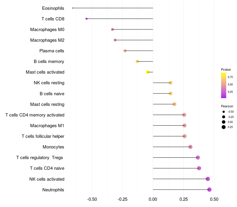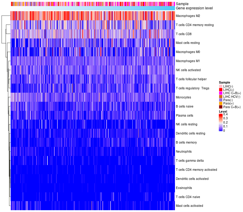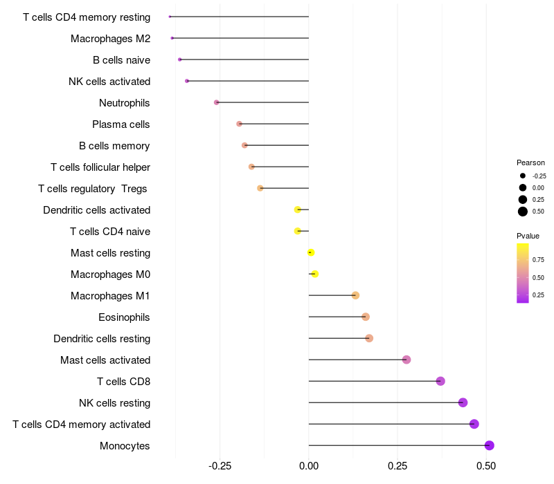 Relationship between gene expression and immune infiltrating cell level