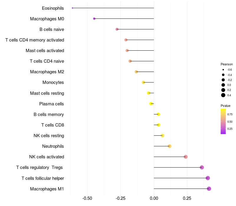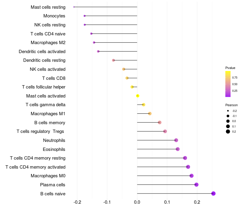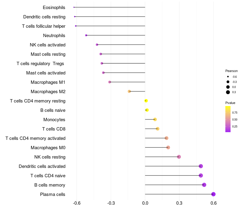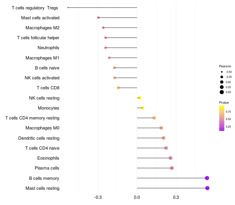 Lollipop of HDAC9 expression and immune infiltrating cell level correlation result in HBV+ Liver cirrhosis samples