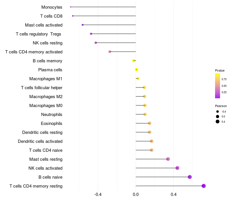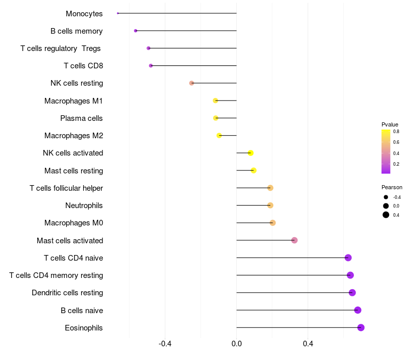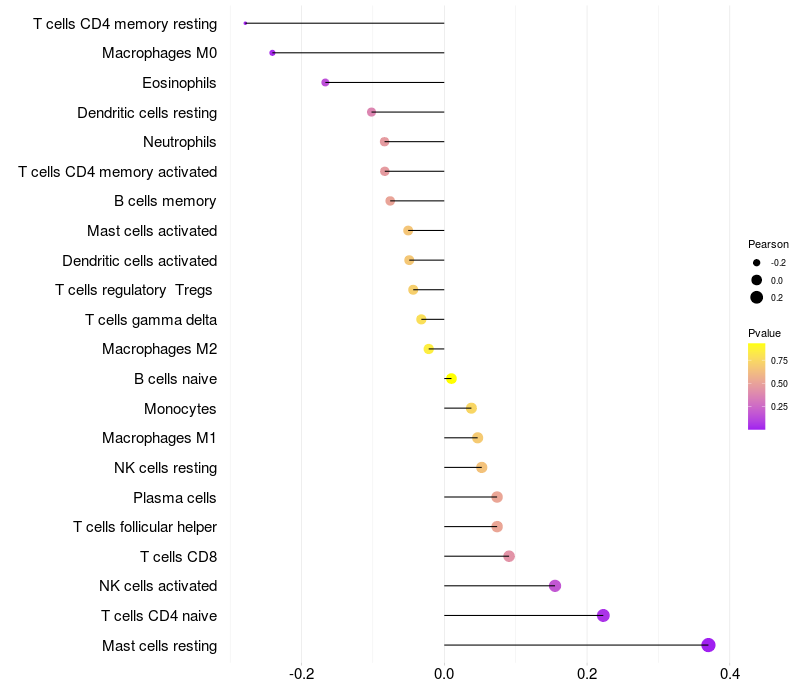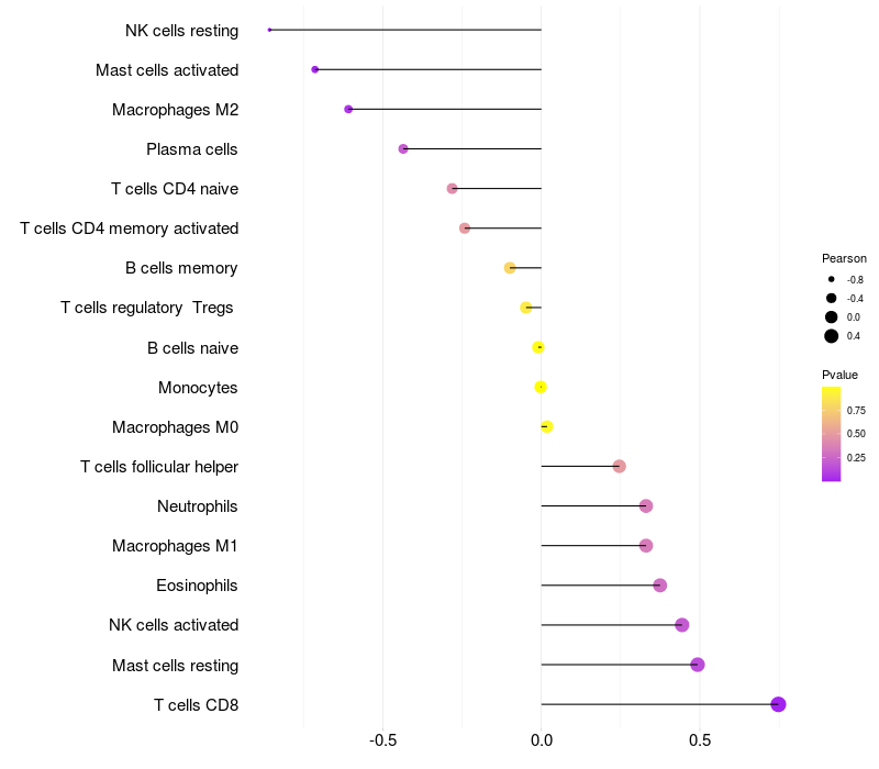 Lollipop of HDHD3 expression and immune infiltrating cell level correlation result in HBV+ Liver cirrhosis samples