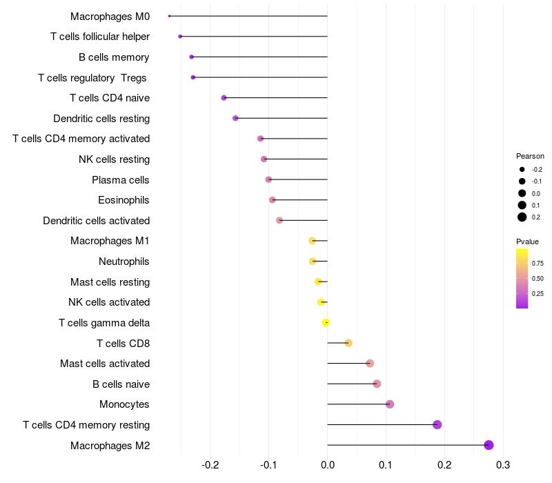 Lollipop of HECW2 expression and immune infiltrating cell level correlation result in HBV+ samples