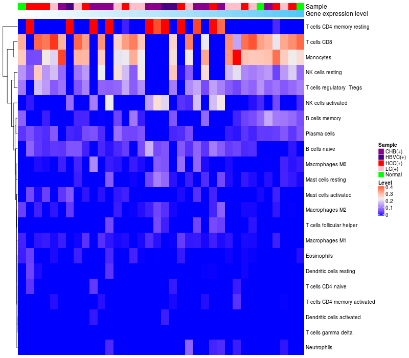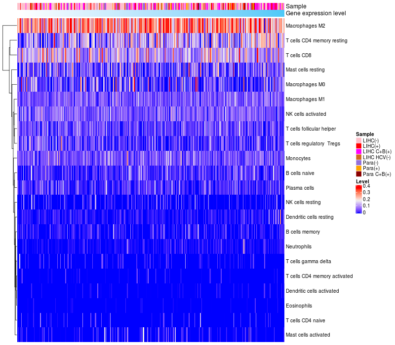 Liver hepatocellular carcinoma HCV (HBV+)(86), Liver hepatocellular carcinoma HCV (HBV-)(19), Liver hepatocellular carcinoma (HBV+)(209), Liver hepatocellular carcinoma (HBV+)(60), Paracancerous HCV (HBV+)(4), Paracancerous (HBV-)(28), Paracancerous (HBV+)(18) |