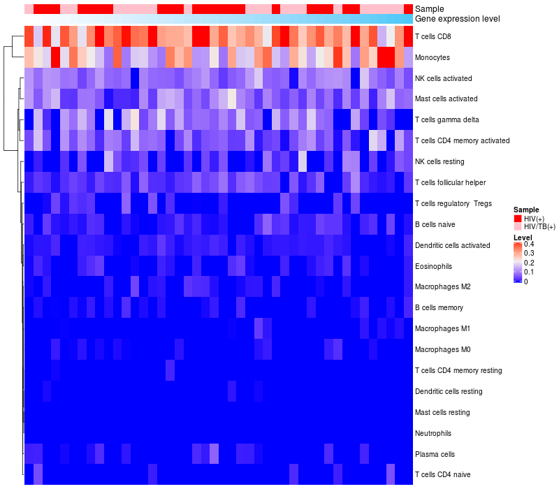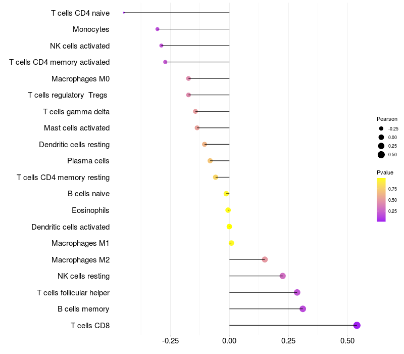 Relationship between gene expression and immune infiltrating cell level