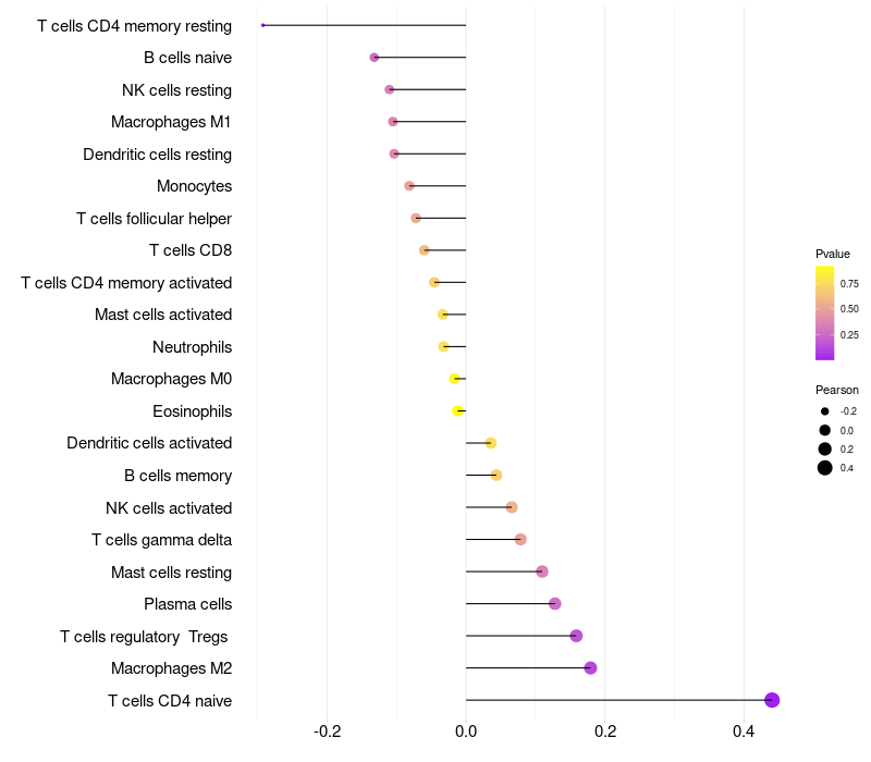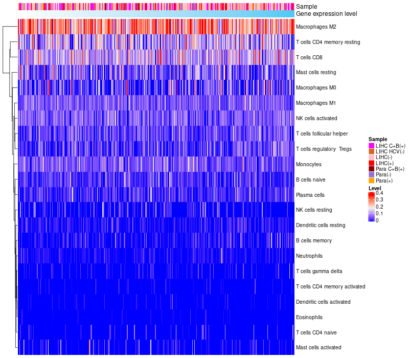Relationship between gene expression and immune infiltrating cell level
