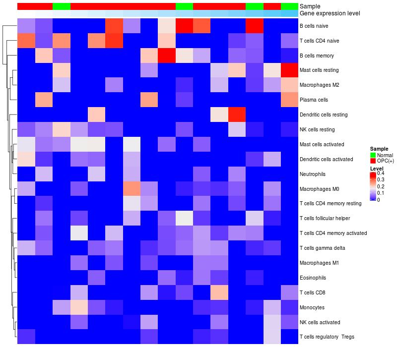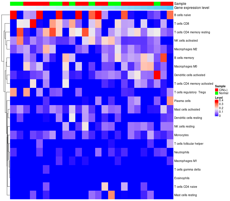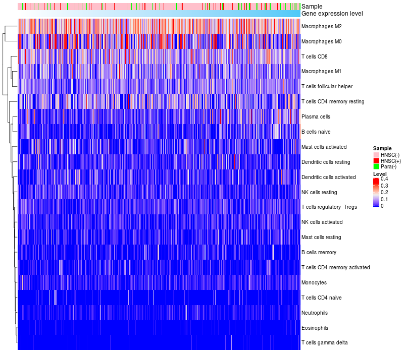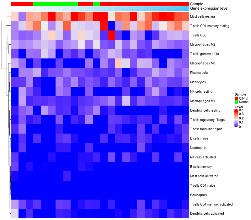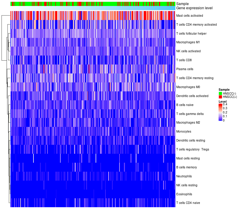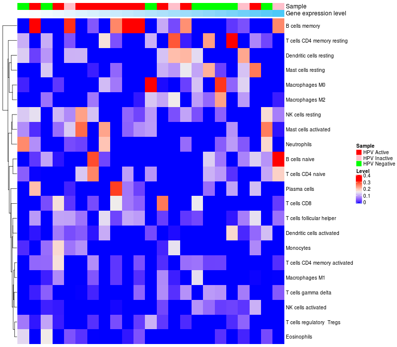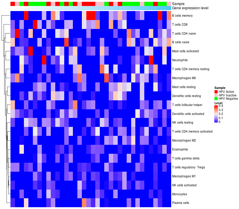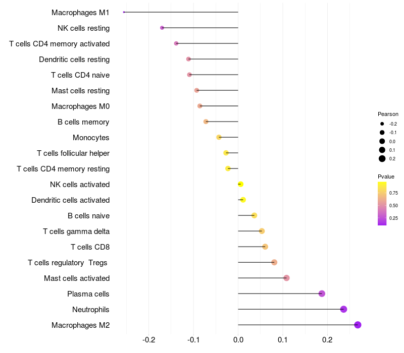 Lollipop of HGD expression and immune infiltrating cell level correlation result in HPV+ samples