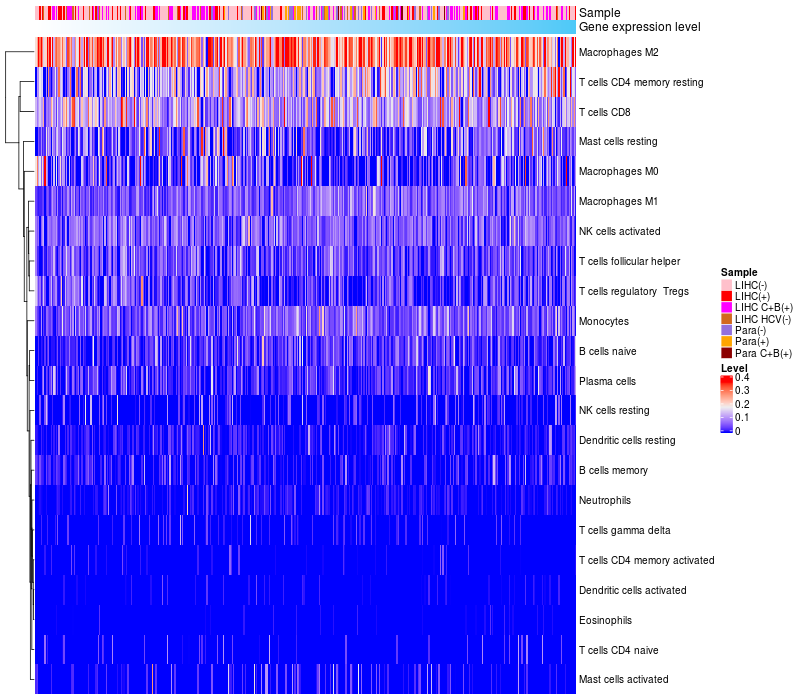 Liver hepatocellular carcinoma HCV (HBV+)(86), Liver hepatocellular carcinoma HCV (HBV-)(19), Liver hepatocellular carcinoma (HBV+)(209), Liver hepatocellular carcinoma (HBV+)(60), Paracancerous HCV (HBV+)(4), Paracancerous (HBV-)(28), Paracancerous (HBV+)(18) |