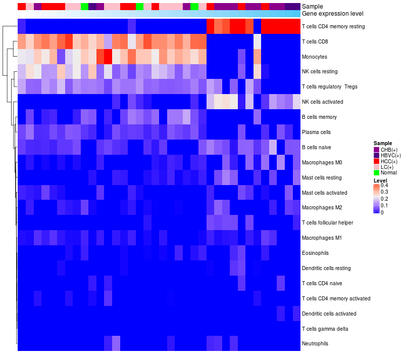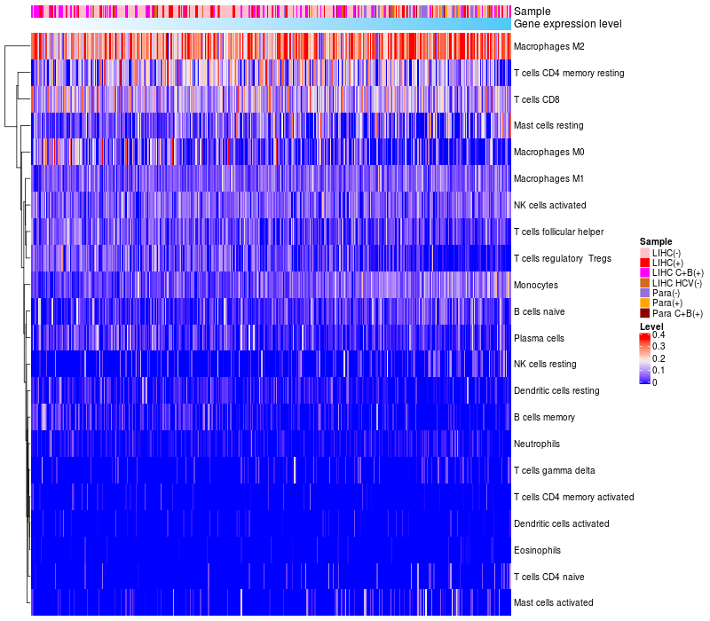 Liver hepatocellular carcinoma HCV (HBV+)(86), Liver hepatocellular carcinoma HCV (HBV-)(19), Liver hepatocellular carcinoma (HBV+)(209), Liver hepatocellular carcinoma (HBV+)(60), Paracancerous HCV (HBV+)(4), Paracancerous (HBV-)(28), Paracancerous (HBV+)(18) |