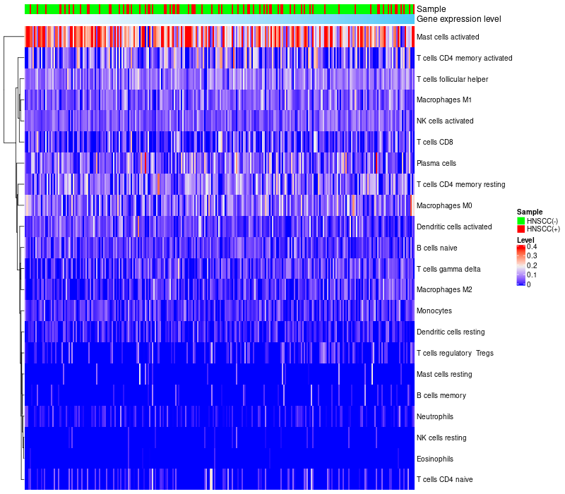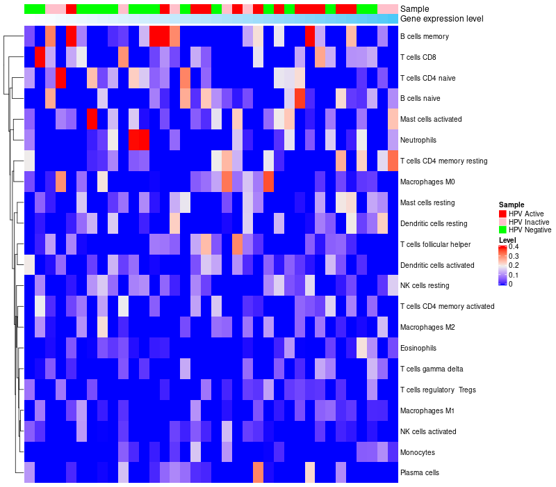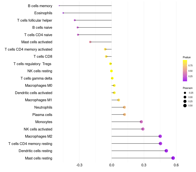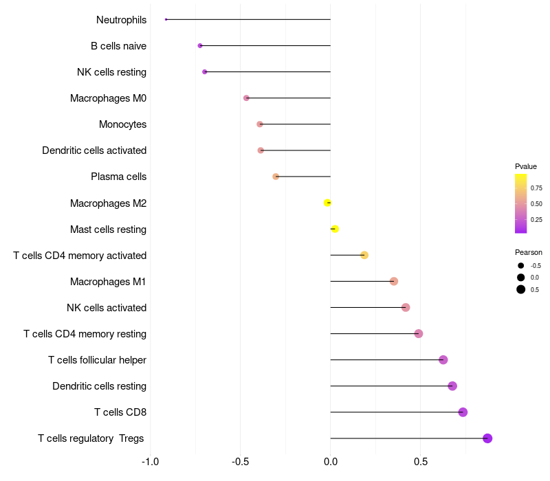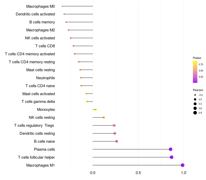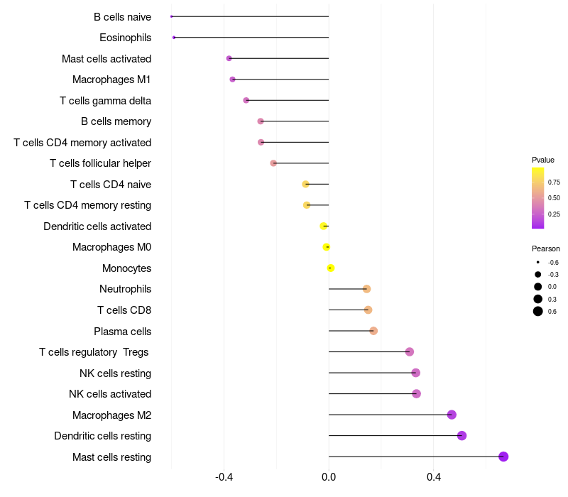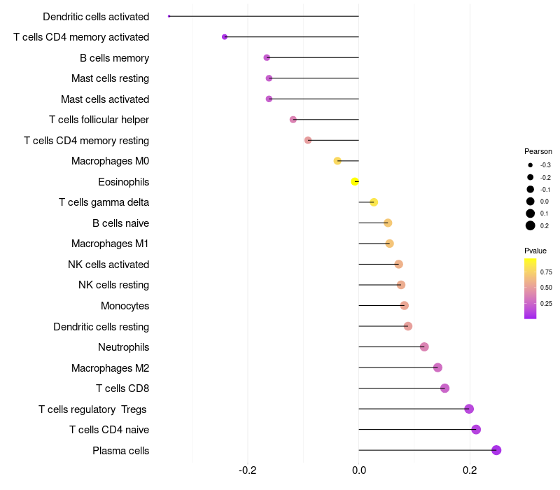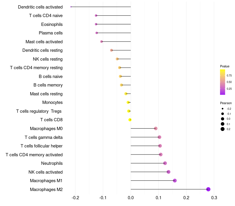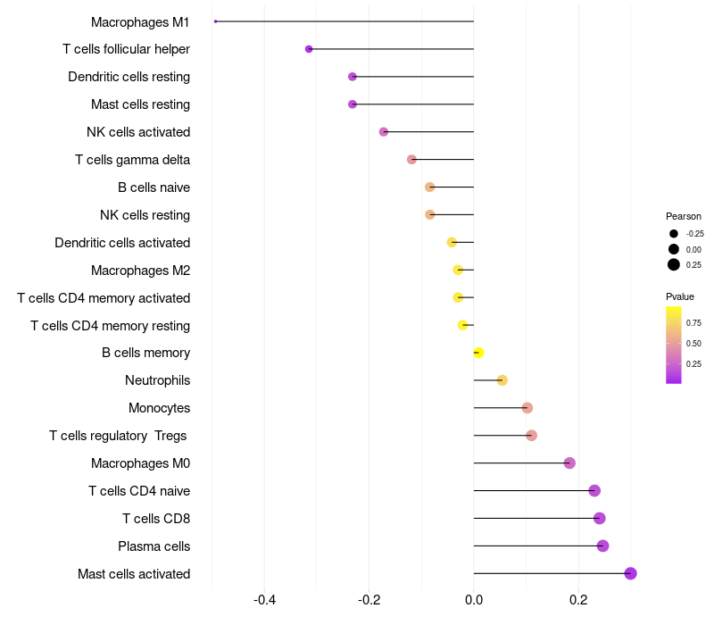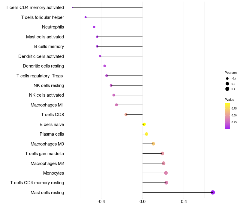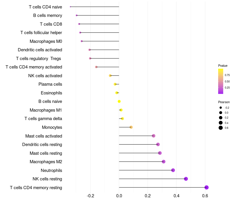 Lollipop of HIGD1B expression and immune infiltrating cell level correlation result in HPV+ samples