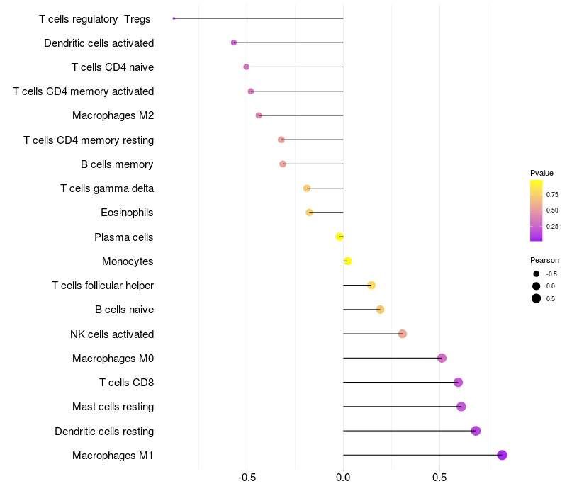 Lollipop of HIGD2B expression and immune infiltrating cell level correlation result in EBV+ samples