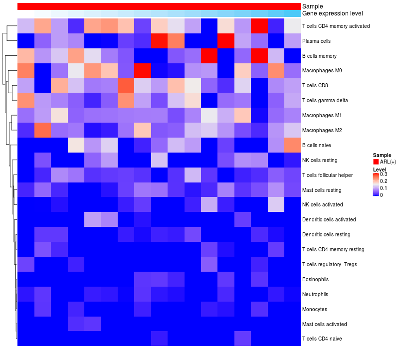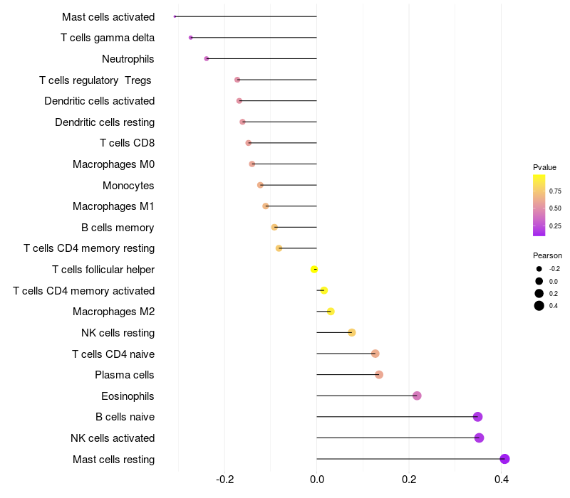 Relationship between gene expression and immune infiltrating cell level