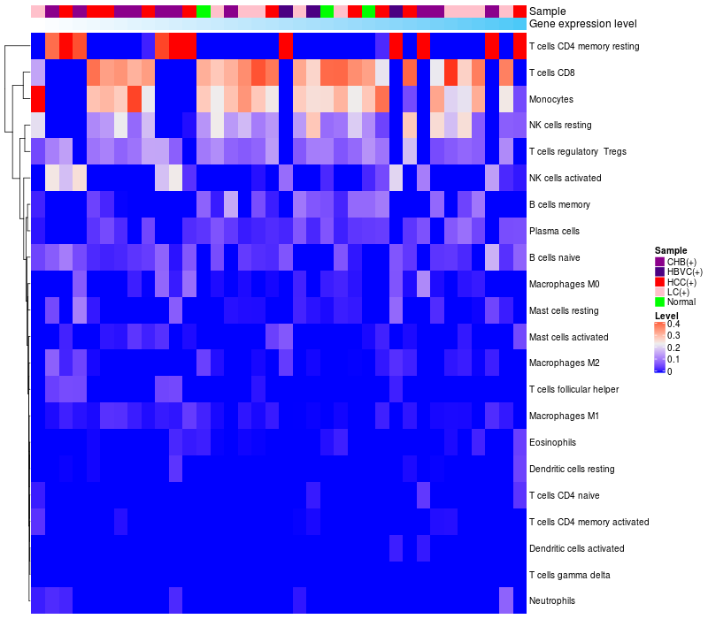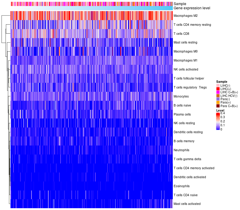 Liver hepatocellular carcinoma HCV (HBV+)(86), Liver hepatocellular carcinoma HCV (HBV-)(19), Liver hepatocellular carcinoma (HBV+)(209), Liver hepatocellular carcinoma (HBV+)(60), Paracancerous HCV (HBV+)(4), Paracancerous (HBV-)(28), Paracancerous (HBV+)(18) |
