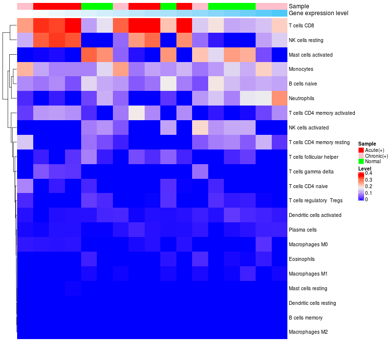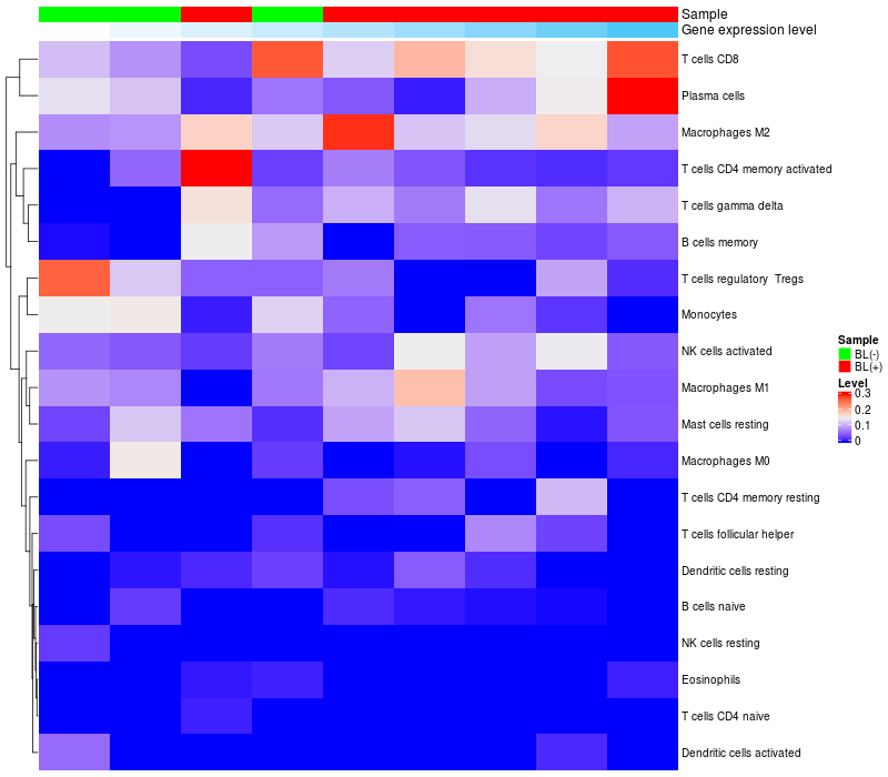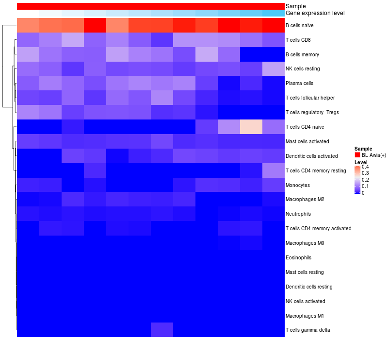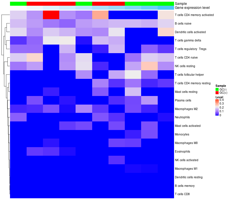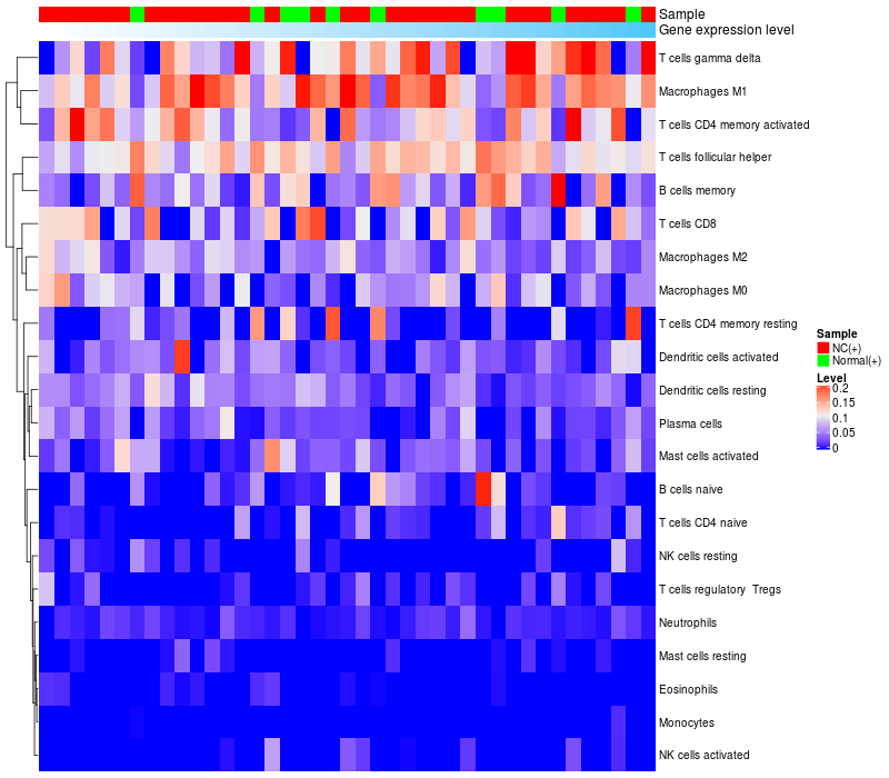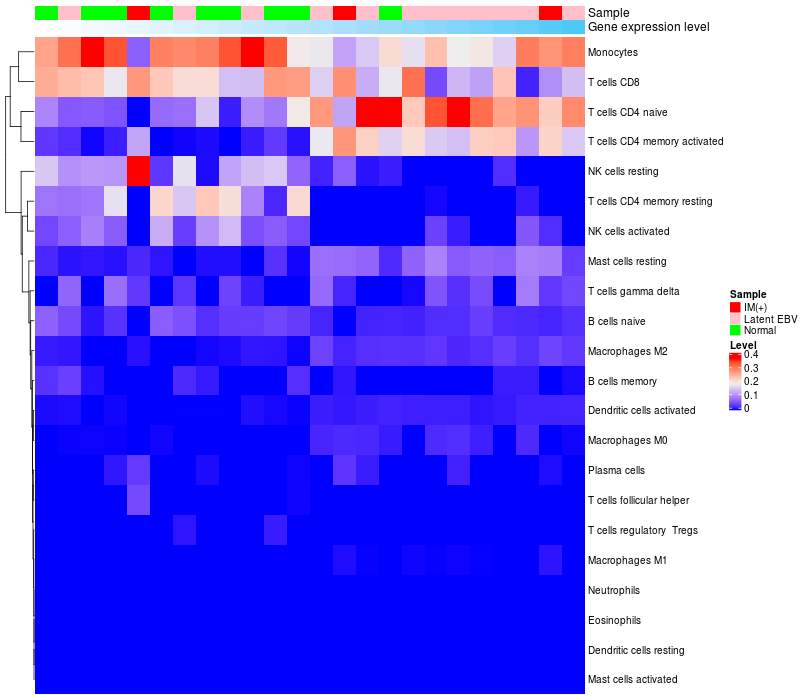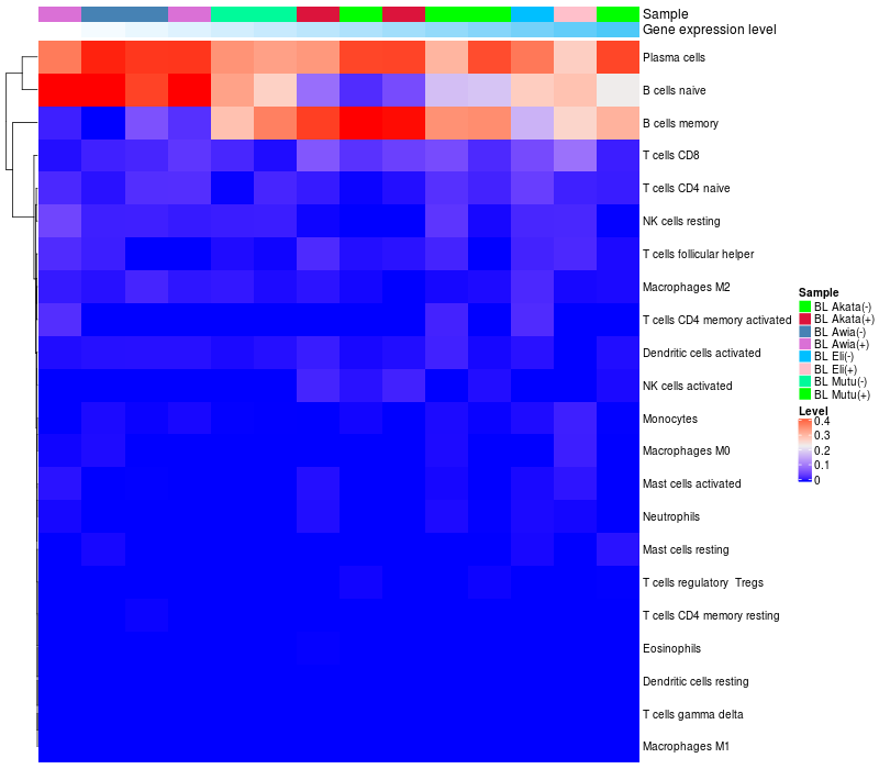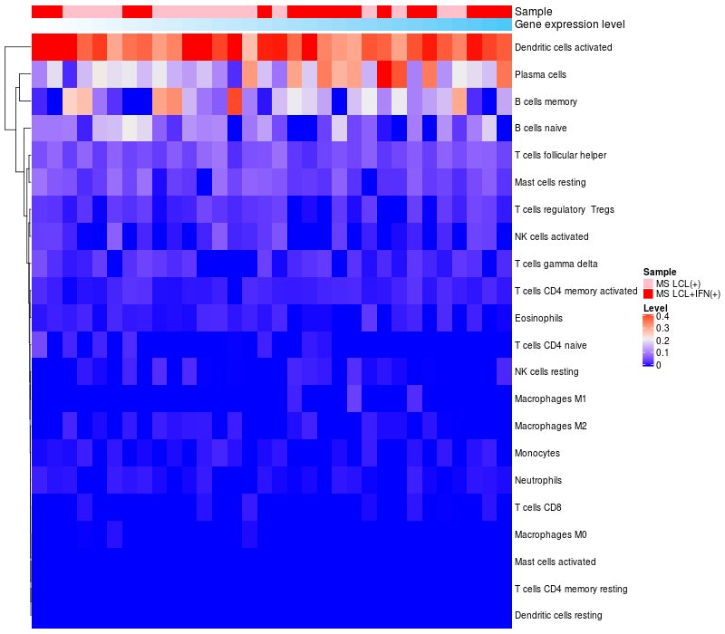 Lollipop of HLA-C expression and immune infiltrating cell level correlation result in EBV+ samples