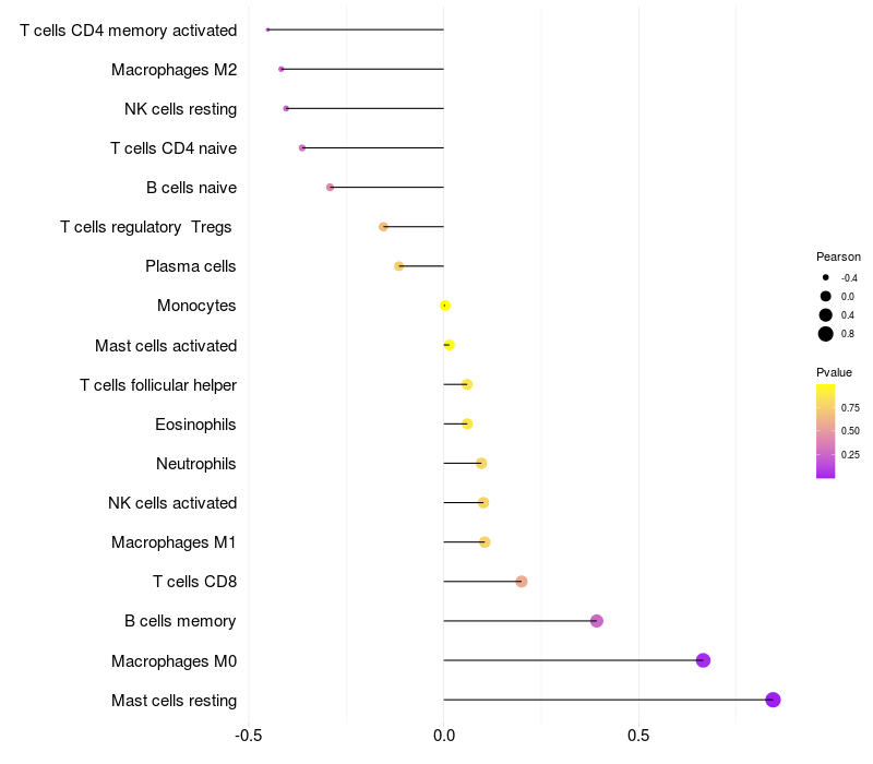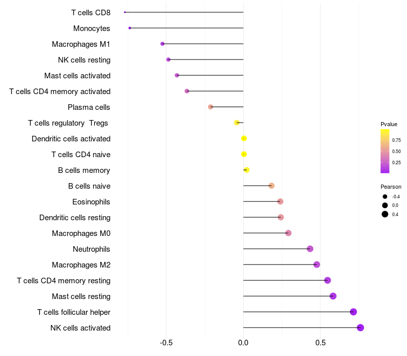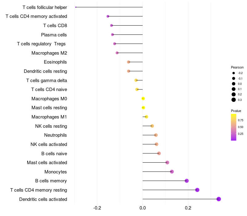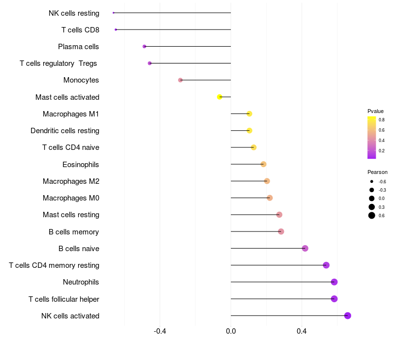 Lollipop of HMG20A expression and immune infiltrating cell level correlation result in HBV+ Chronic HBV (CHB) infection samples