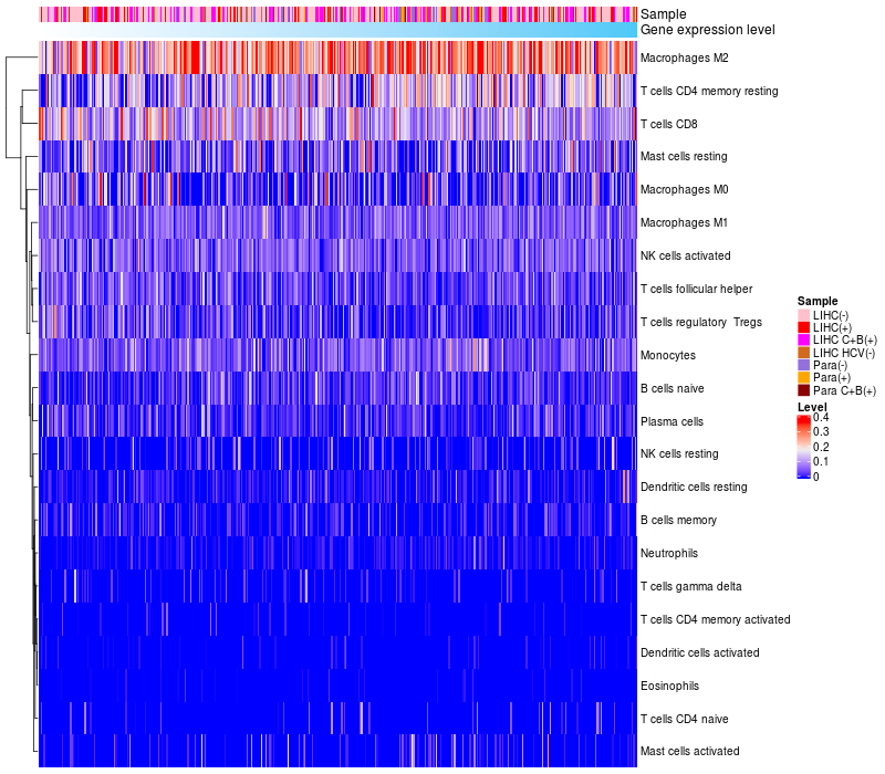 Liver hepatocellular carcinoma HCV (HBV+)(86), Liver hepatocellular carcinoma HCV (HBV-)(19), Liver hepatocellular carcinoma (HBV+)(209), Liver hepatocellular carcinoma (HBV+)(60), Paracancerous HCV (HBV+)(4), Paracancerous (HBV-)(28), Paracancerous (HBV+)(18) |