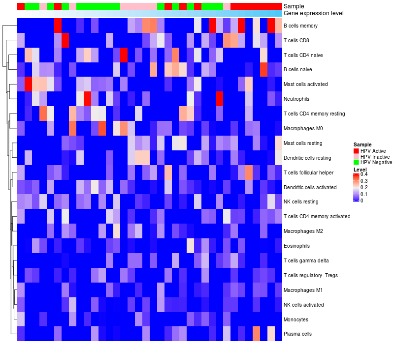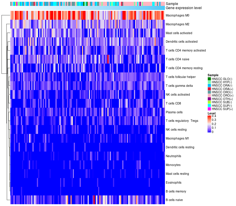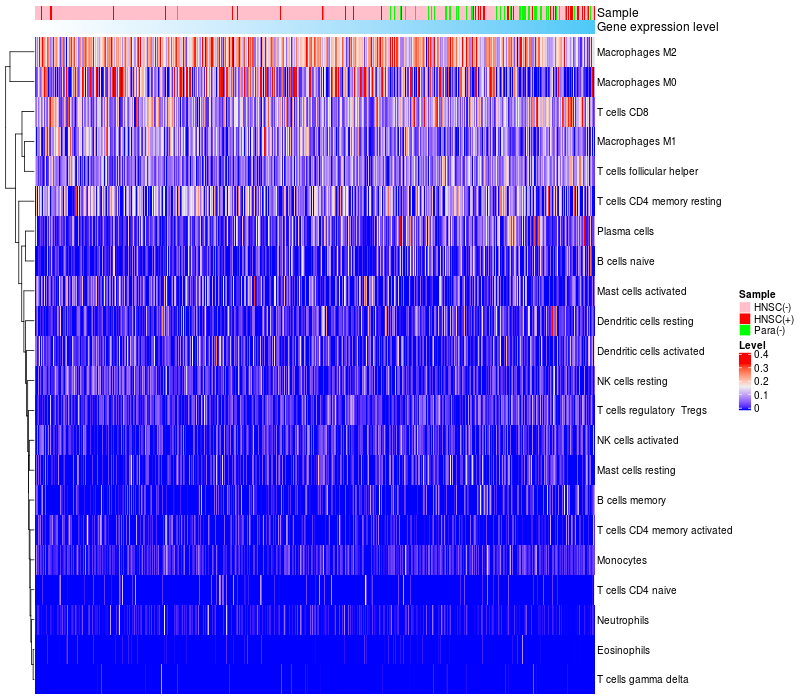 Head and Neck squamous cell carcinoma(HPV-)(483),Head and Neck squamous cell carcinoma(HPV+)(39),Paracancerous(HPV-)(44) |