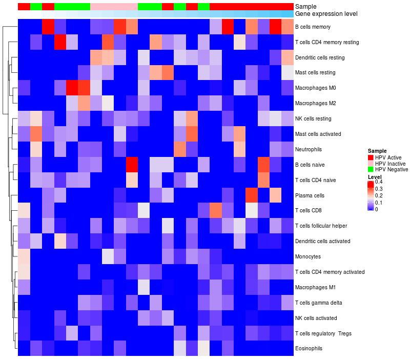 Oropharyngeal cancers HPV Active (12), Oropharyngeal cancers HPV Inactive (8), Oropharyngeal cancers HPV Negative (16) |