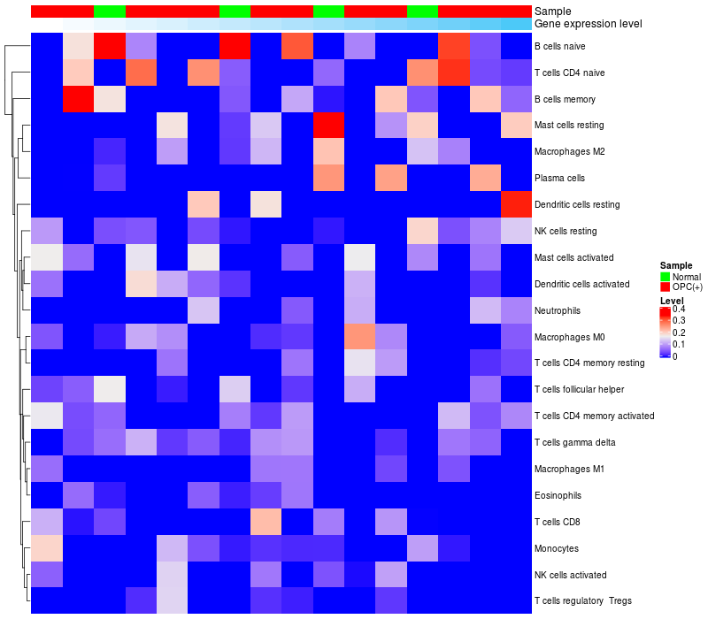 Oropharyngeal cancers (HPV+)(12), Normal (4) |
