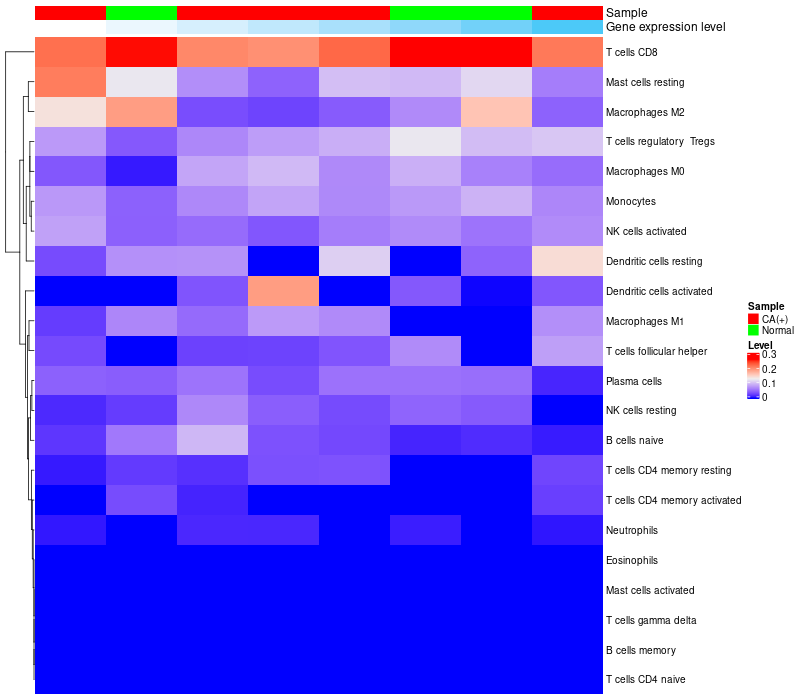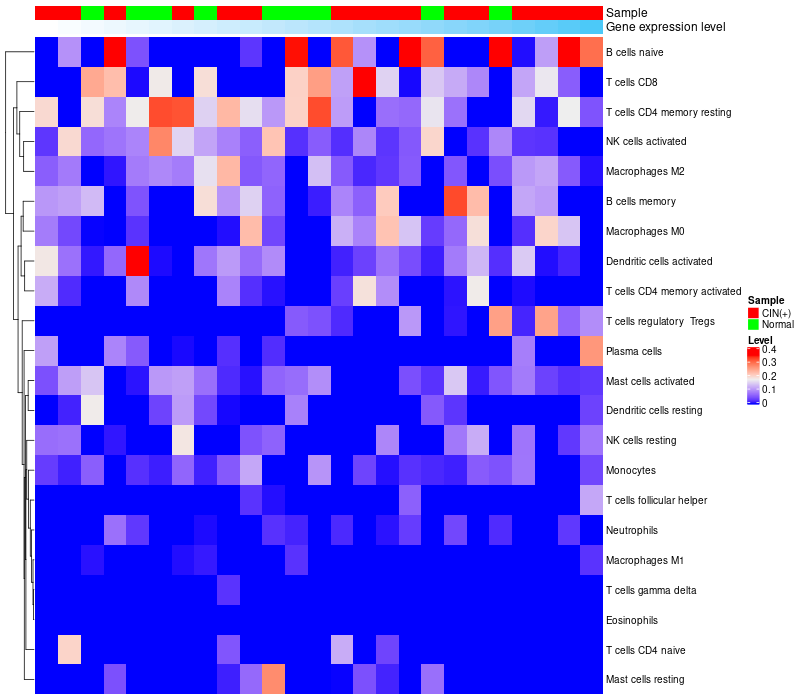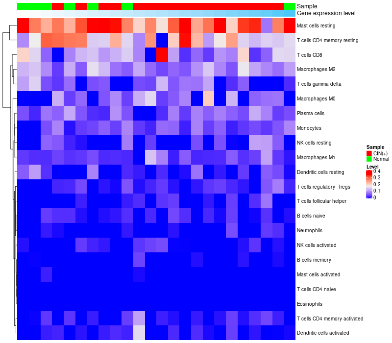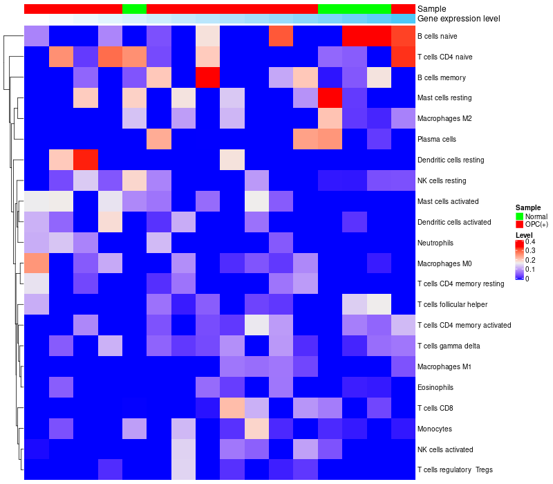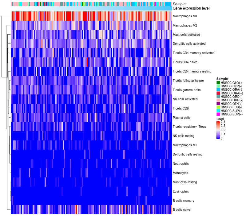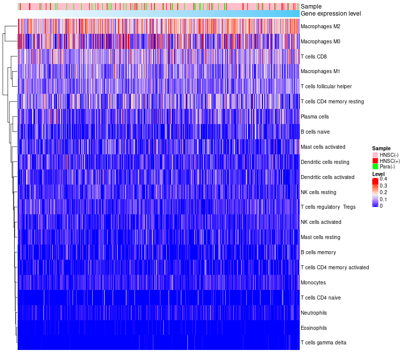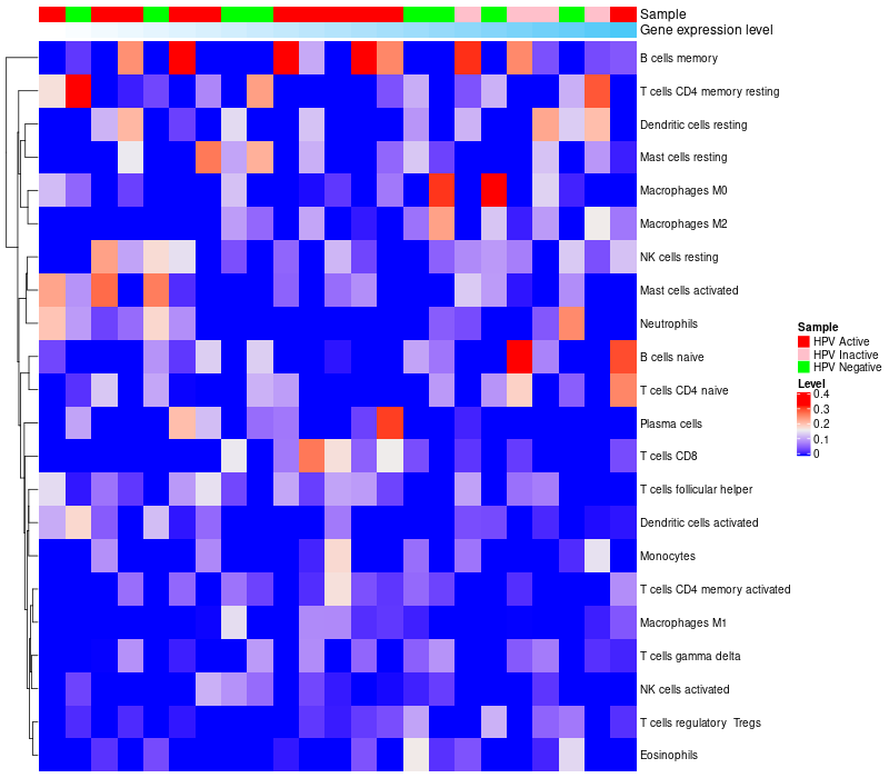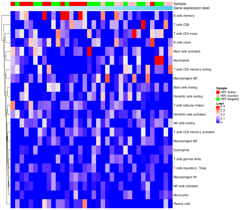 Lollipop of HMHB1 expression and immune infiltrating cell level correlation result in HPV+ samples