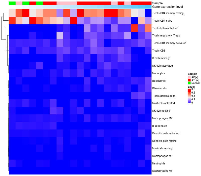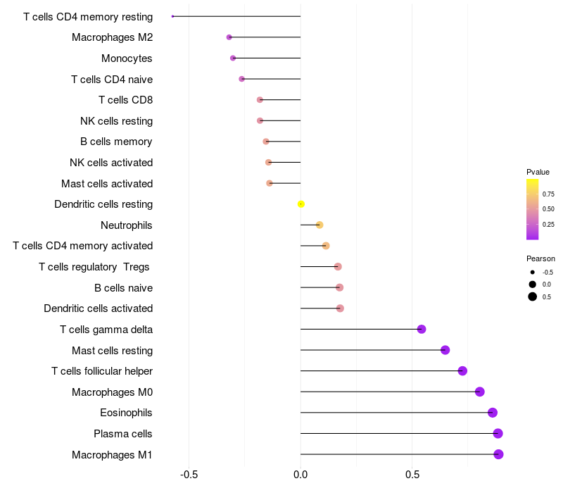 Relationship between gene expression and immune infiltrating cell level