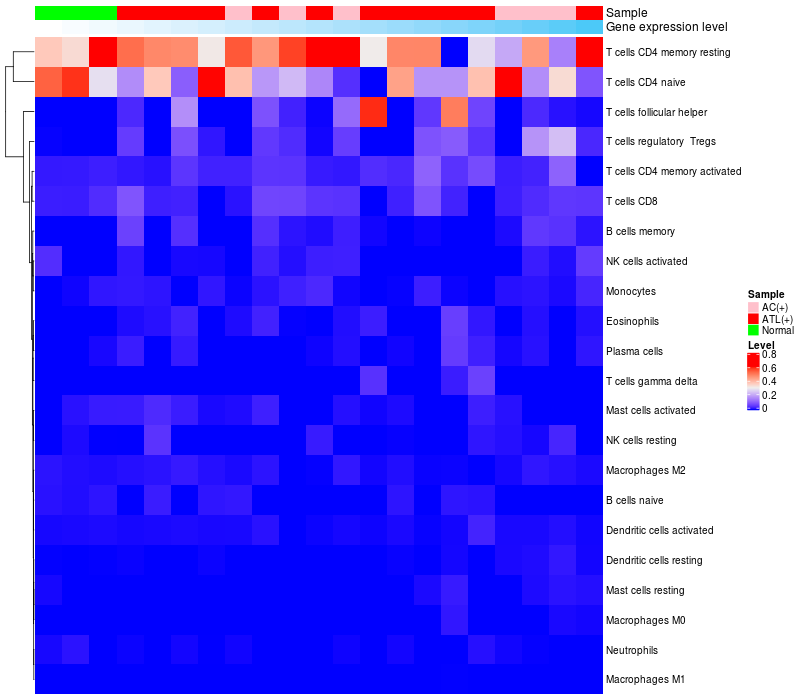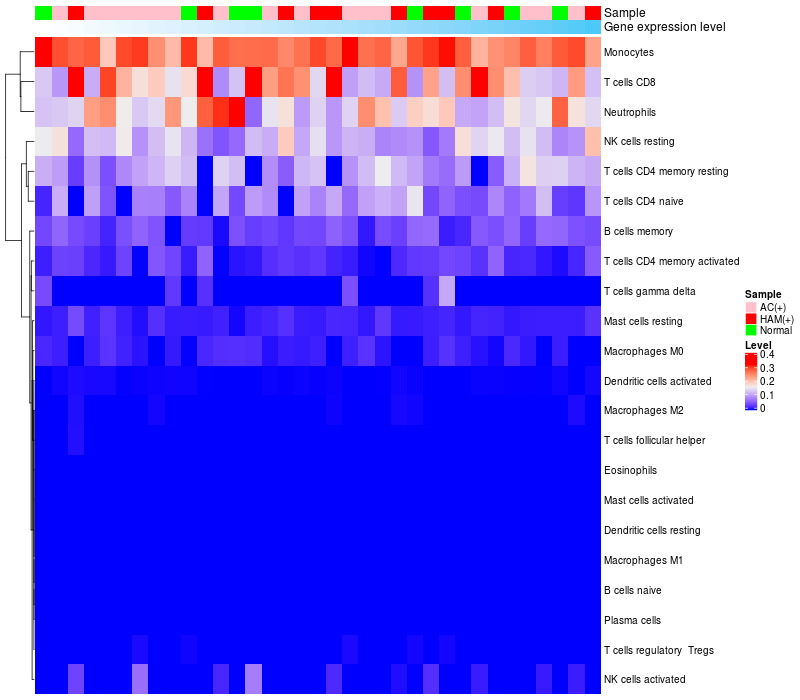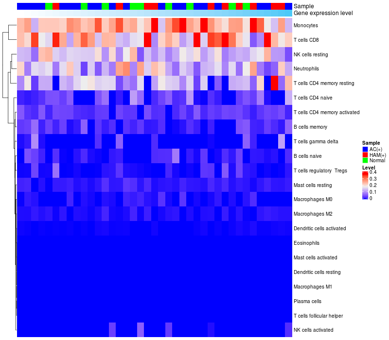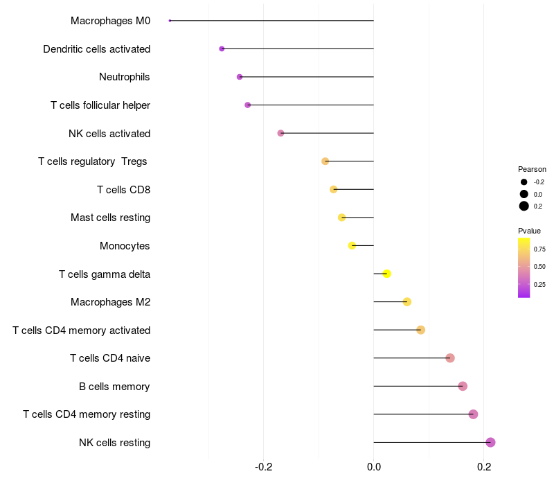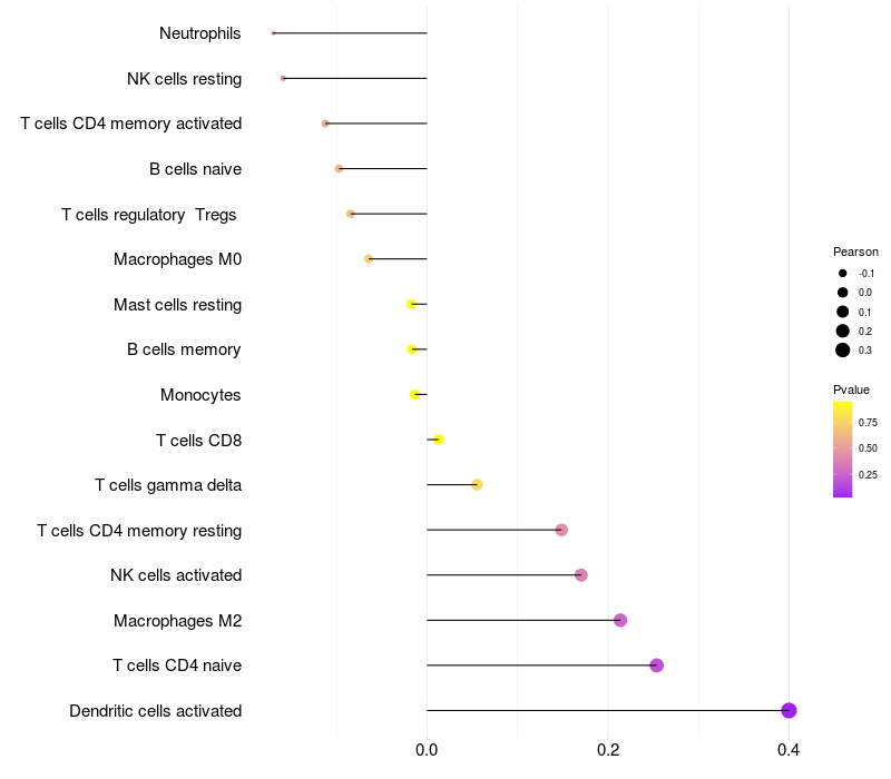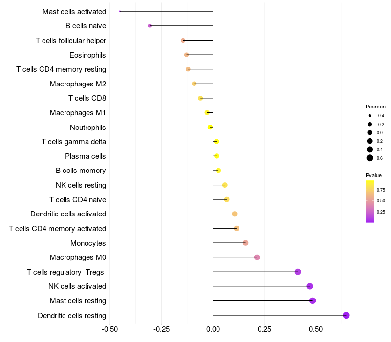 Relationship between gene expression and immune infiltrating cell level