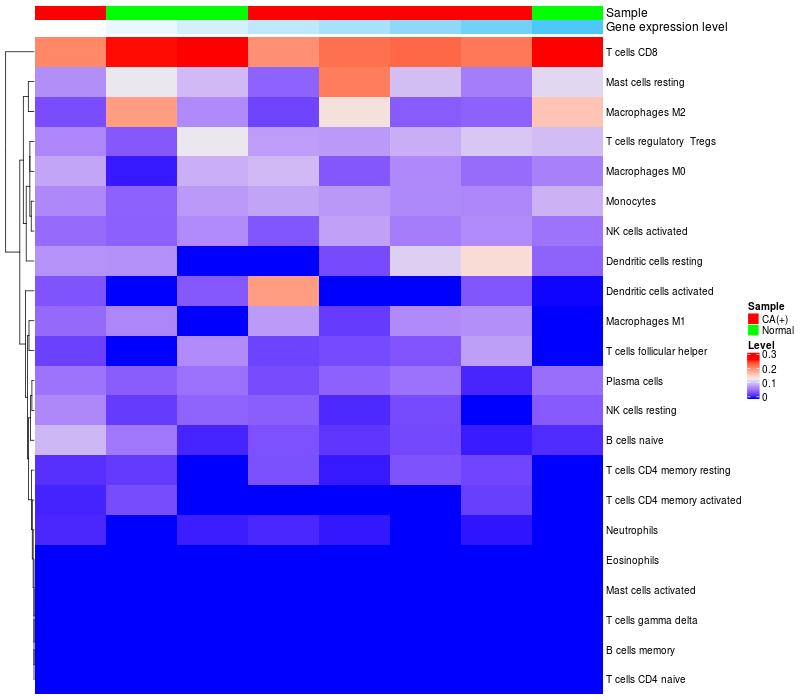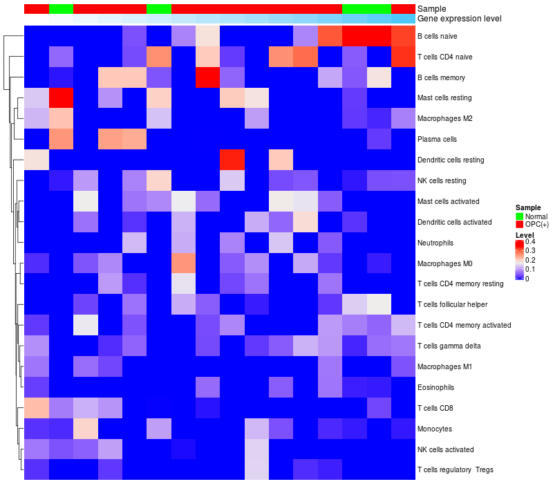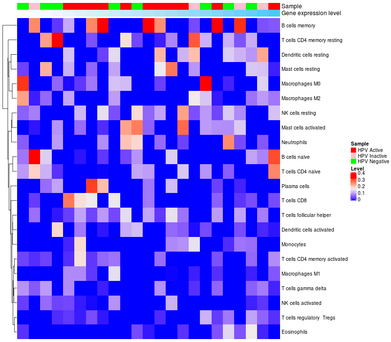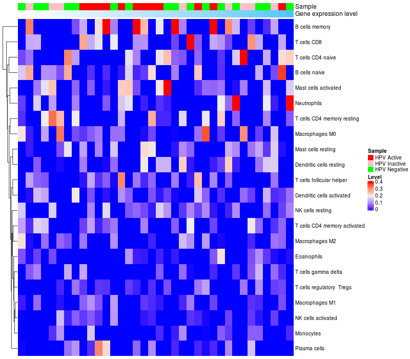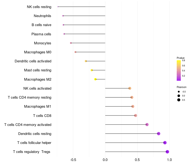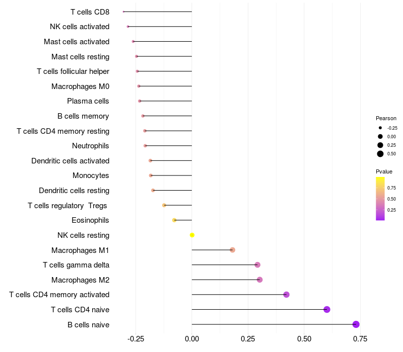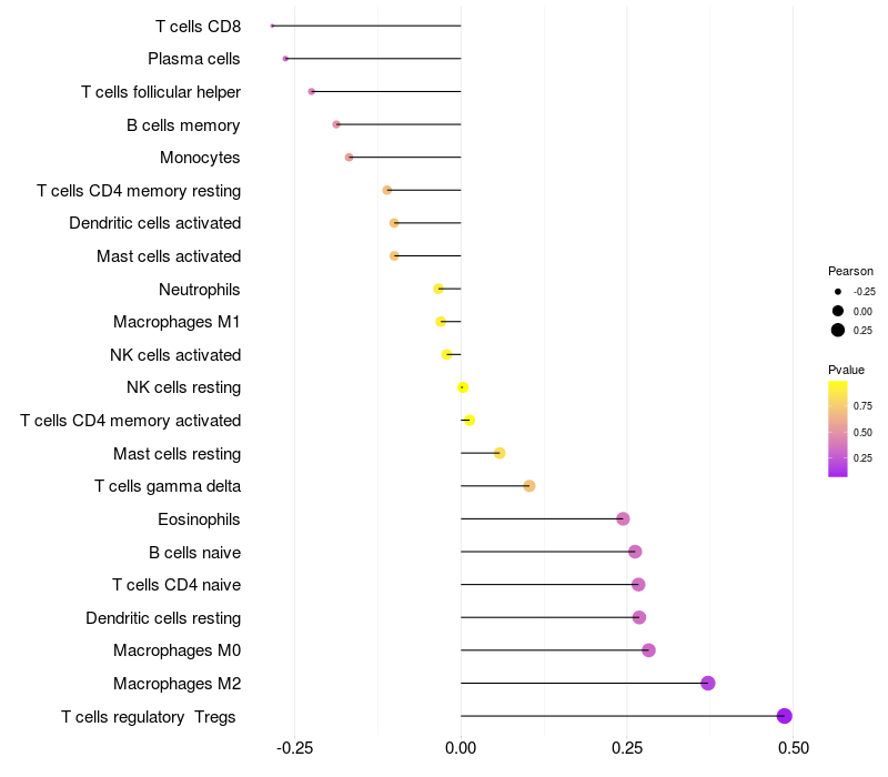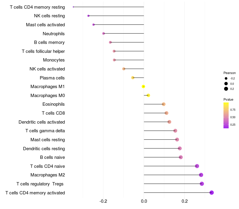 Lollipop of HNRNPKP3 expression and immune infiltrating cell level correlation result in HPV+ samples