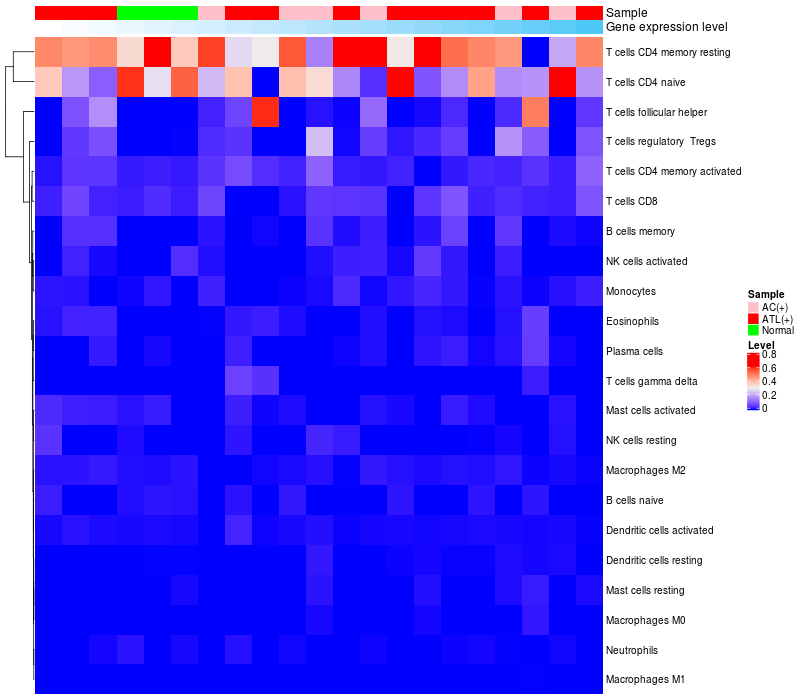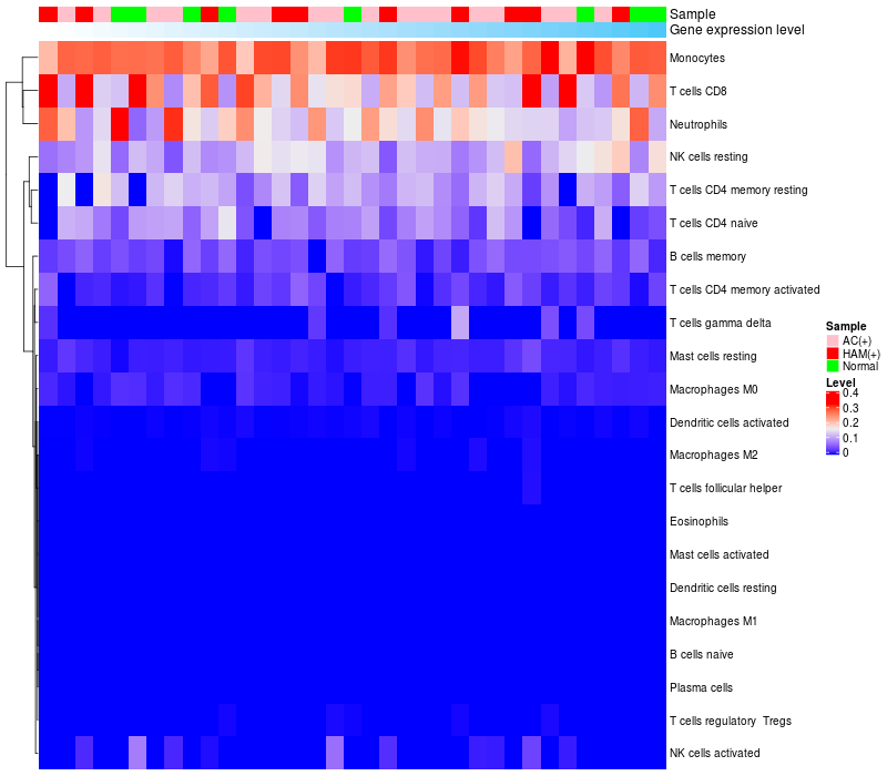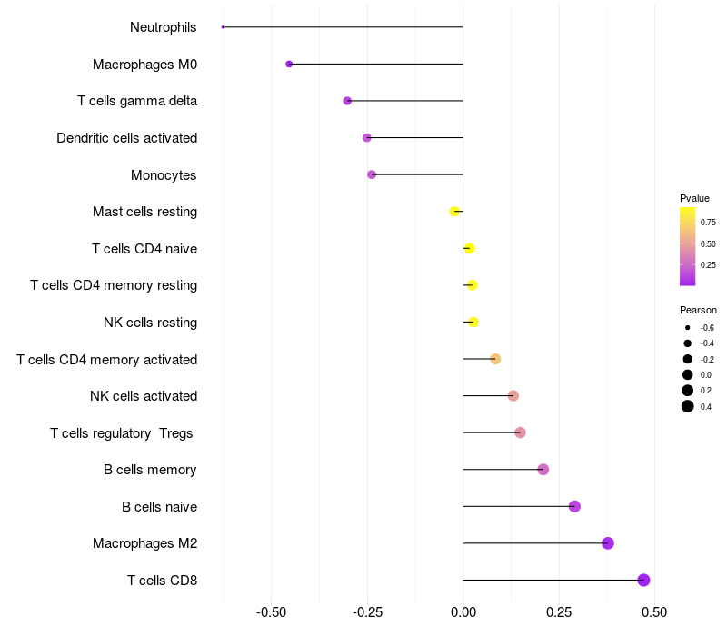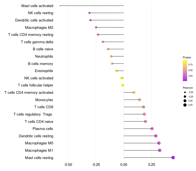 Lollipop of HOMER1 expression and immune infiltrating cell level correlation result in HTLV1+ samples