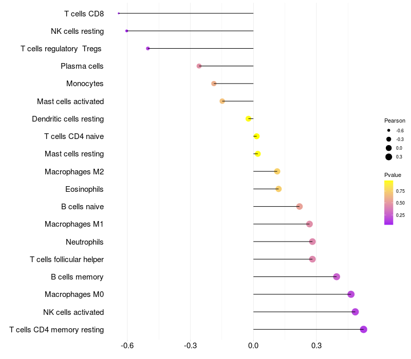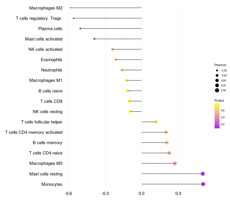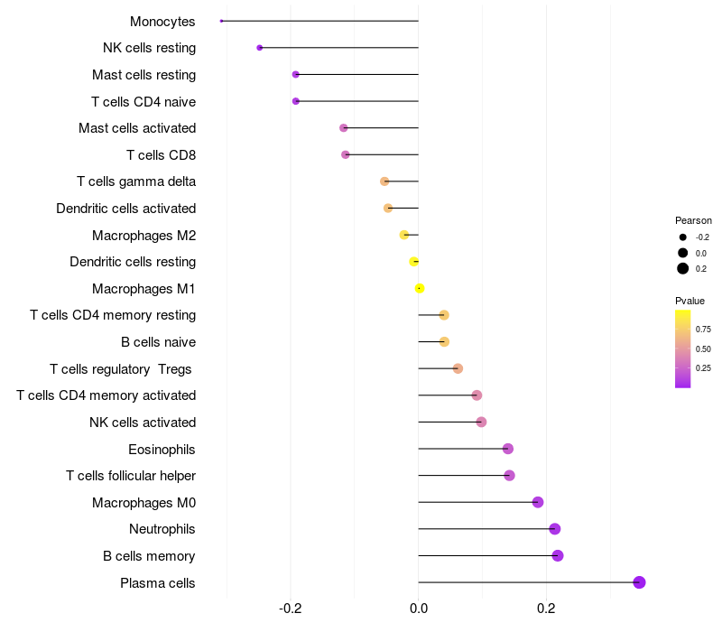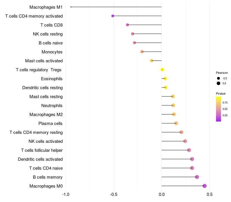 Lollipop of HOOK3 expression and immune infiltrating cell level correlation result in HBV+ Liver cirrhosis samples