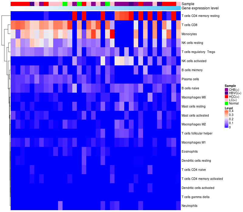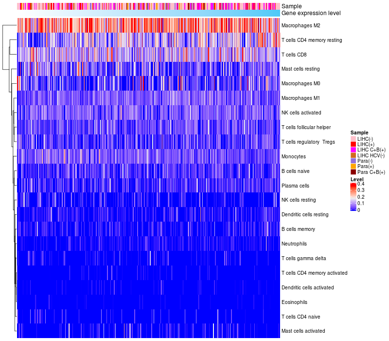Liver hepatocellular carcinoma HCV (HBV+)(86), Liver hepatocellular carcinoma HCV (HBV-)(19), Liver hepatocellular carcinoma (HBV+)(209), Liver hepatocellular carcinoma (HBV+)(60), Paracancerous HCV (HBV+)(4), Paracancerous (HBV-)(28), Paracancerous (HBV+)(18) |