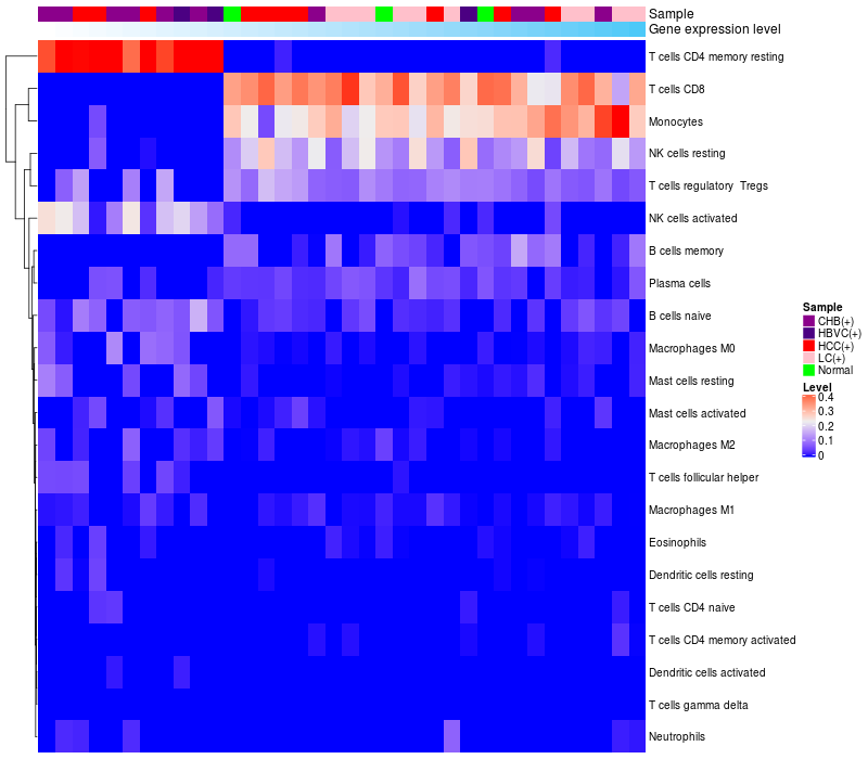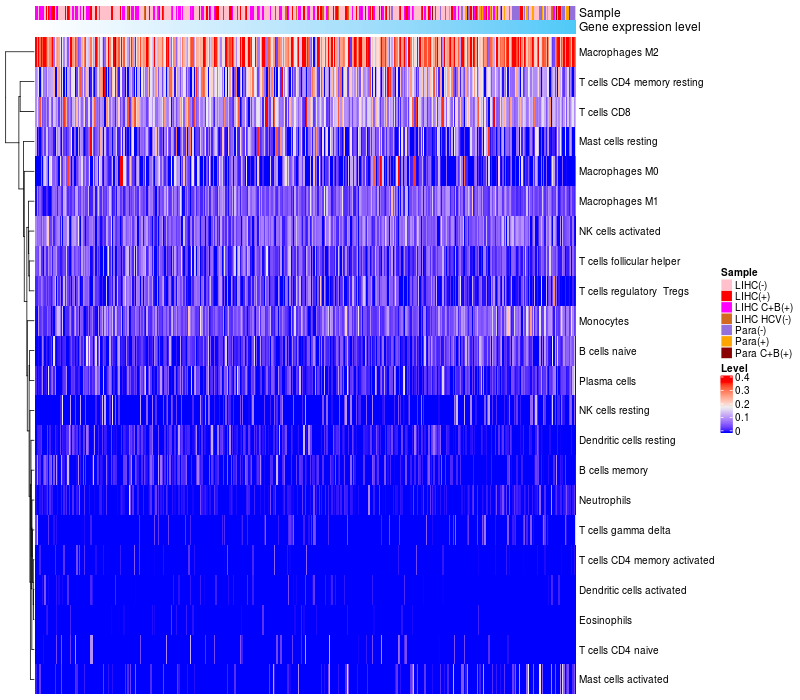 Relationship between gene expression and immune infiltrating cell level