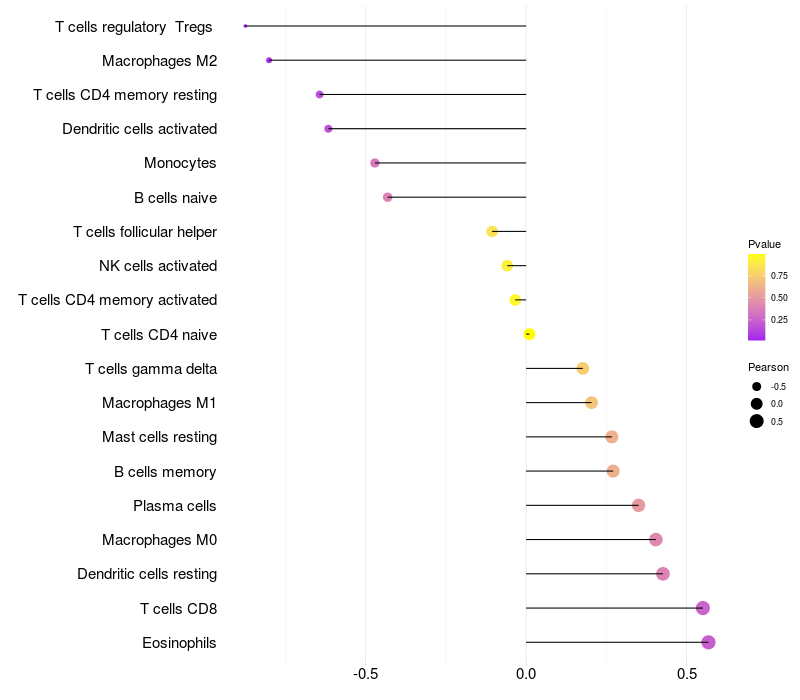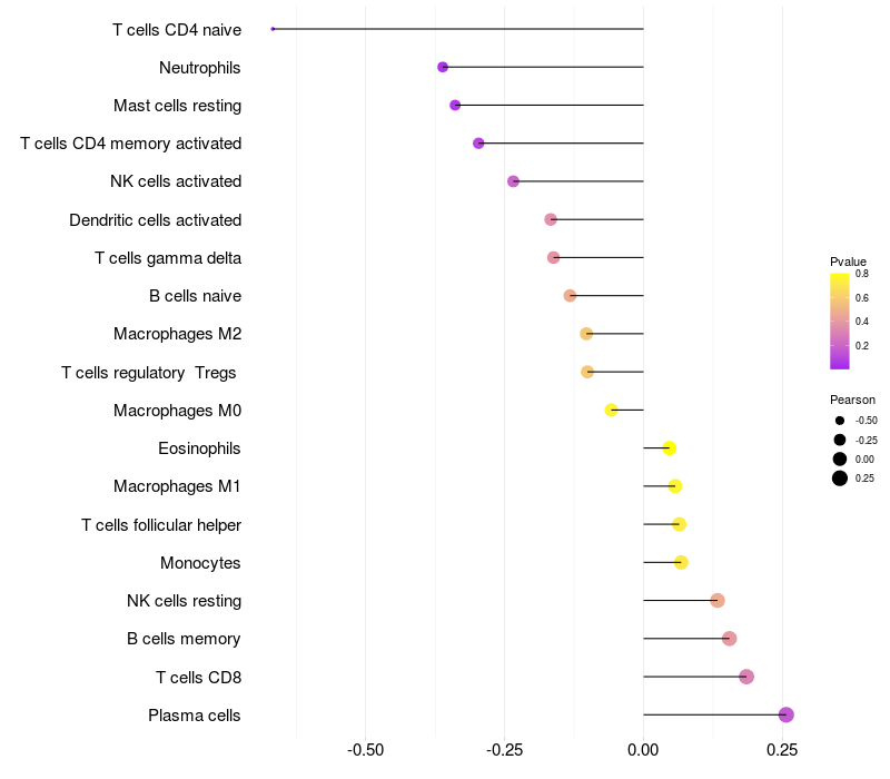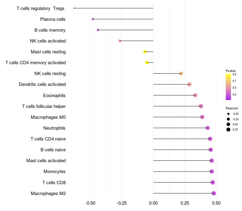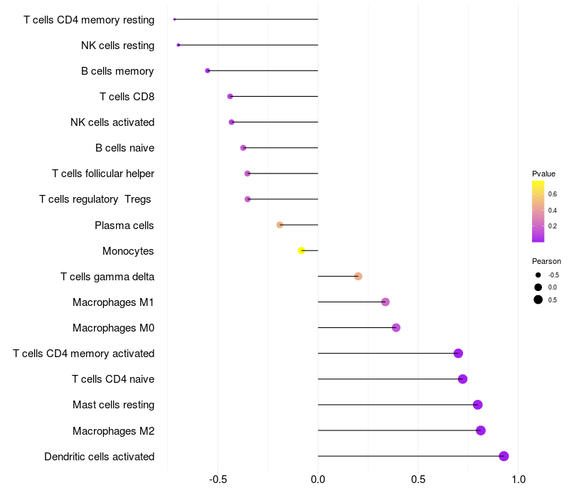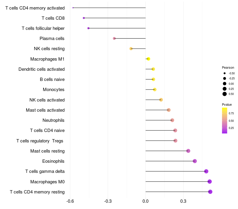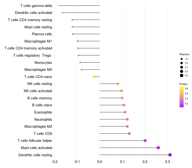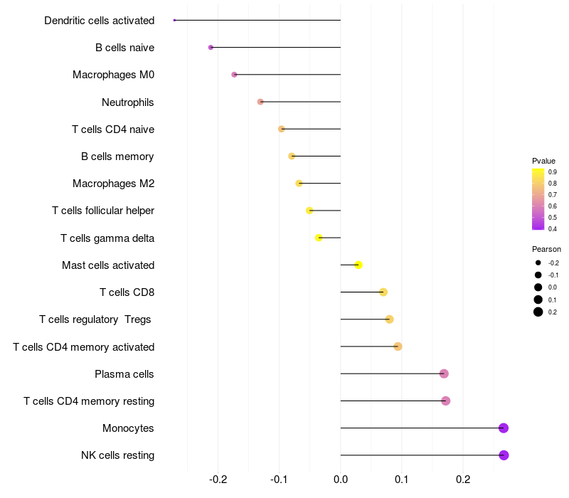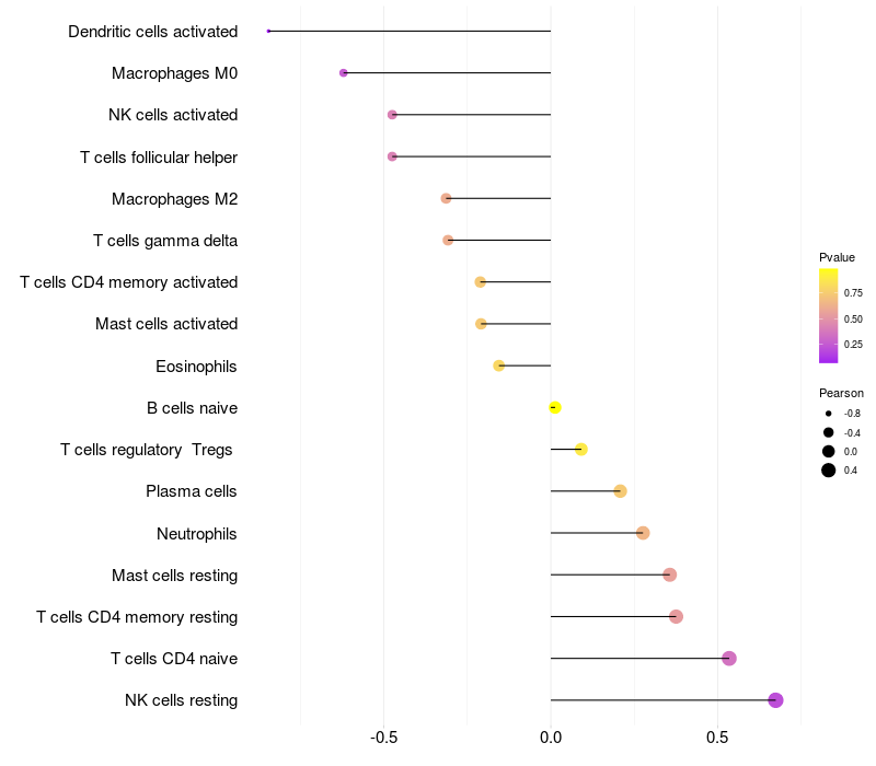 Lollipop of HS6ST3 expression and immune infiltrating cell level correlation result in EBV+ samples