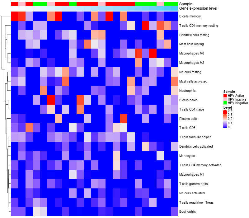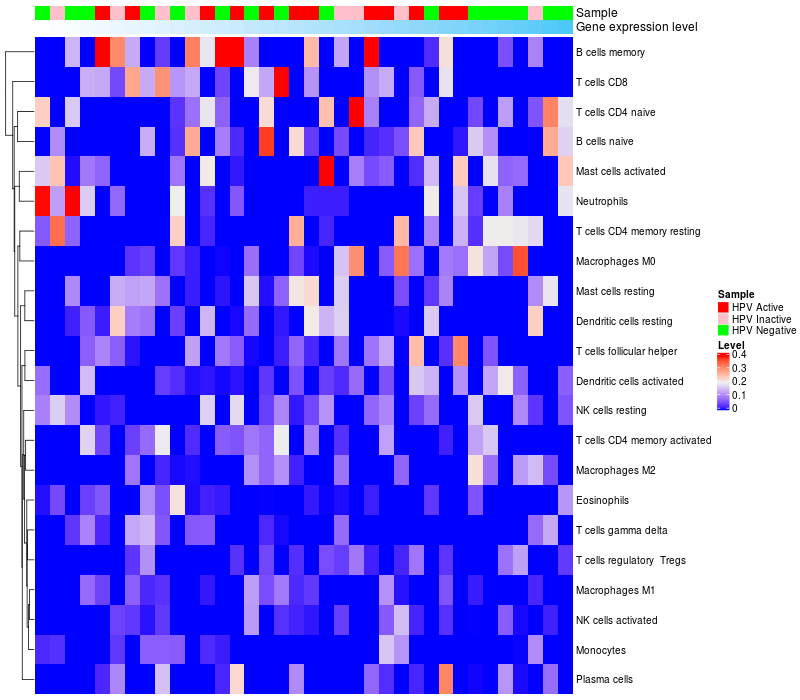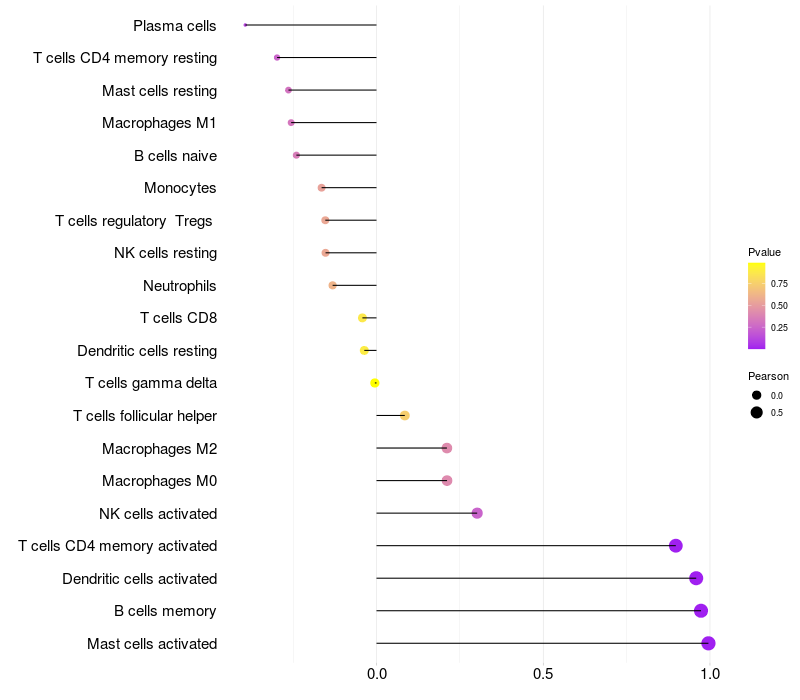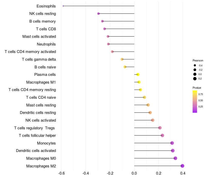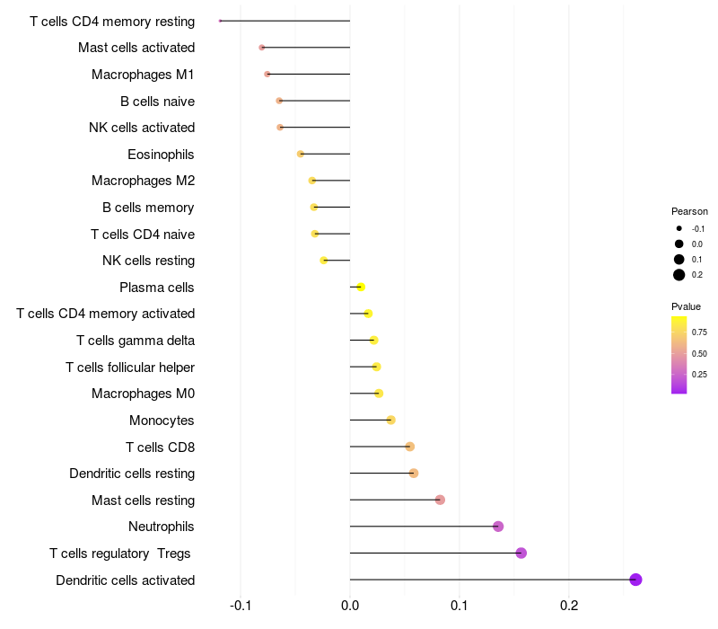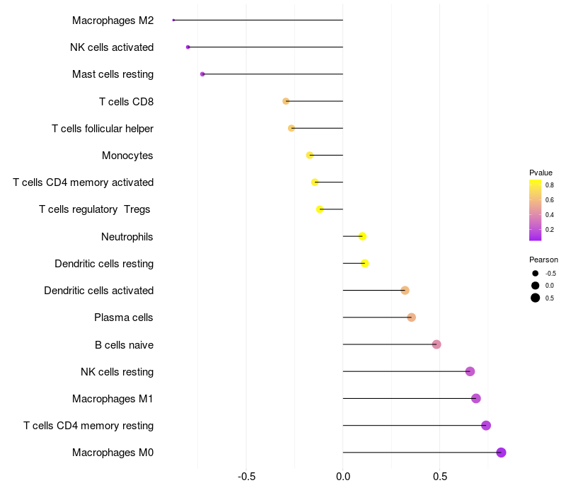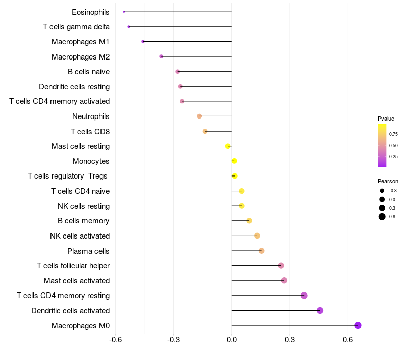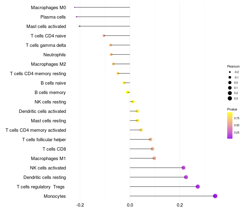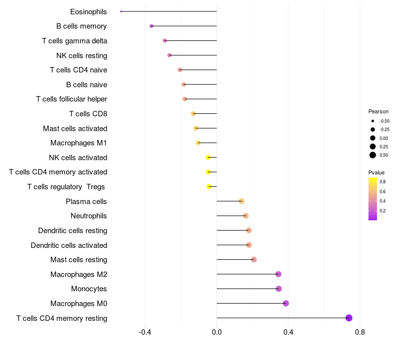 Lollipop of HSD17B3 expression and immune infiltrating cell level correlation result in HPV+ samples