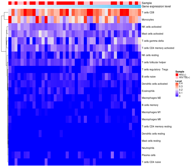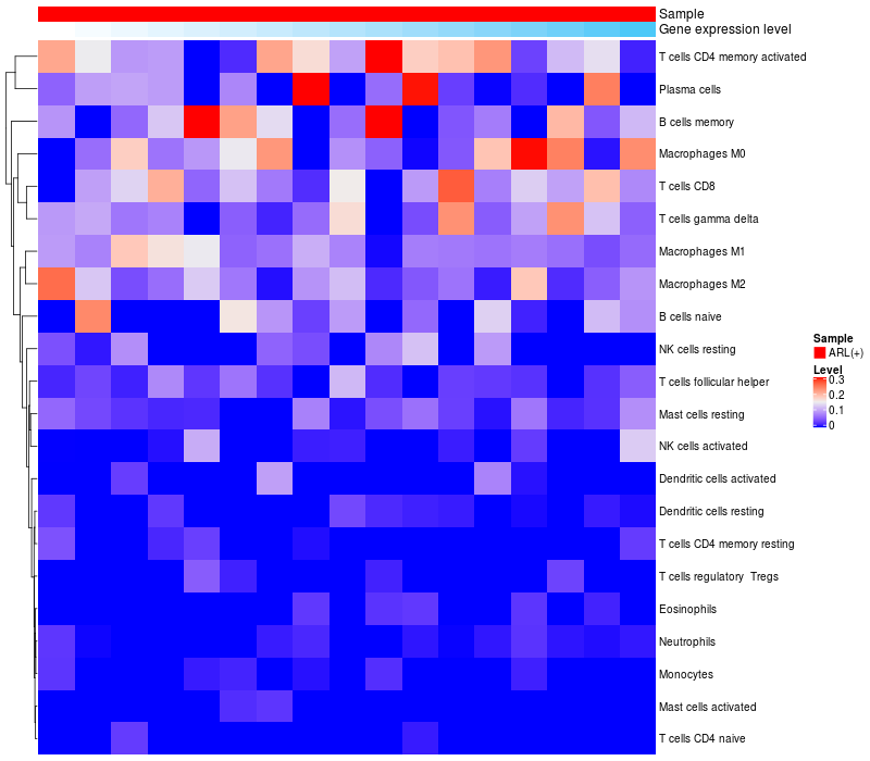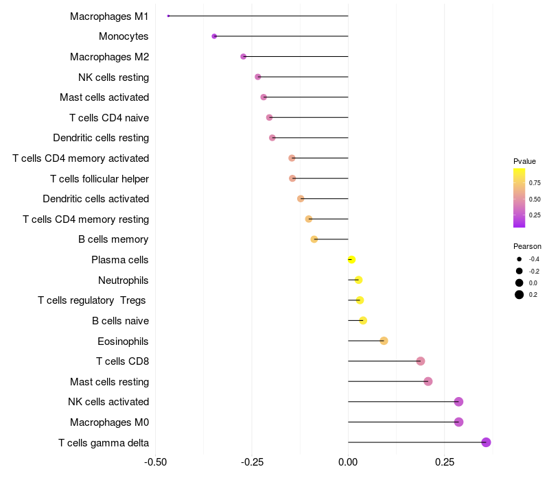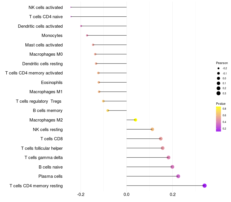 Relationship between gene expression and immune infiltrating cell level