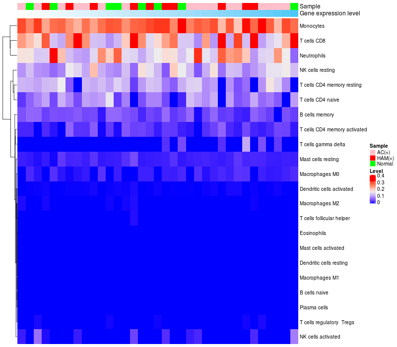 Relationship between gene expression and immune infiltrating cell level